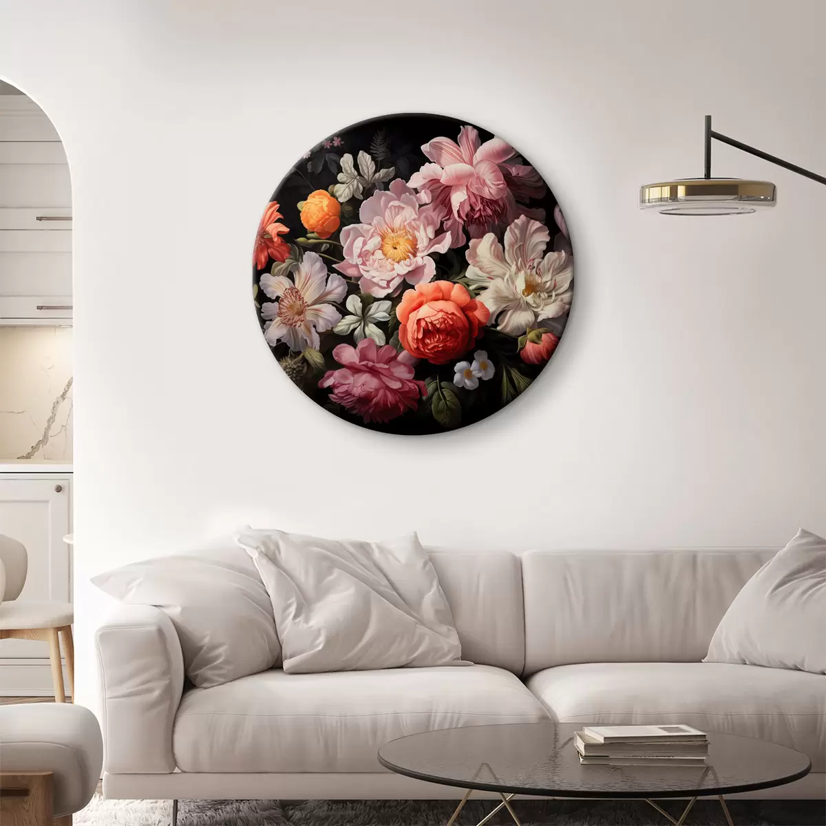 Quadri rotondi Immagine di fiori su sfondo nero r38721