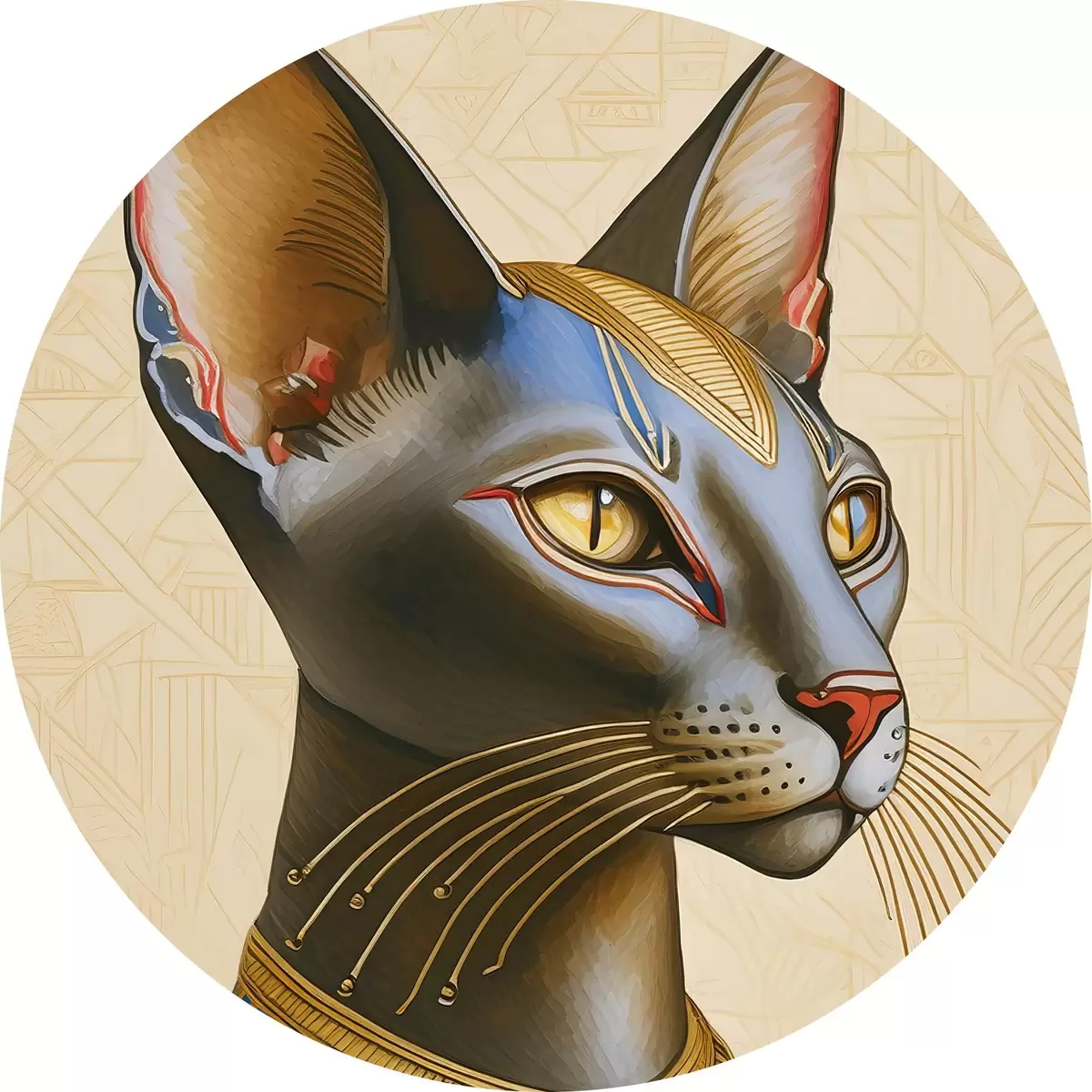 Quadri rotondi Bastet, dea egiziana, gatto di profilo r38725