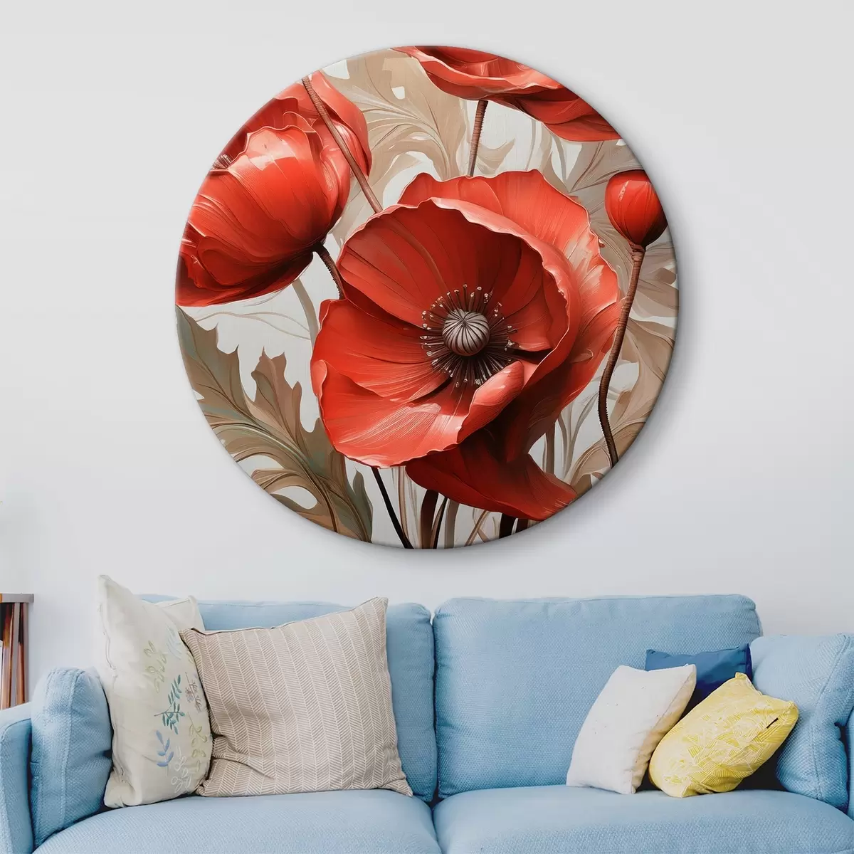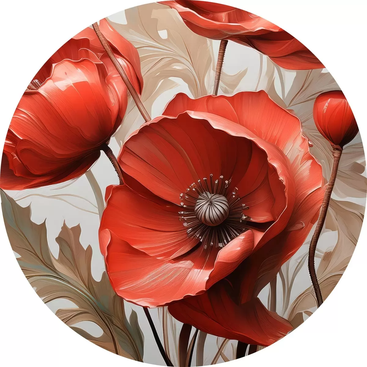 Quadri rotondi Grandi papaveri rossi con colori ad olio r38732
