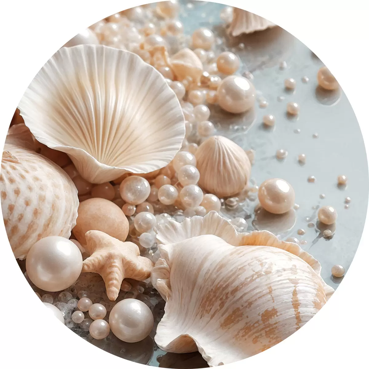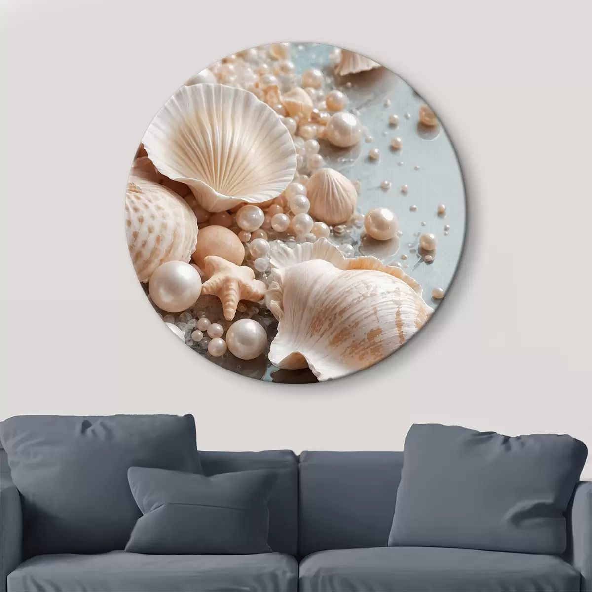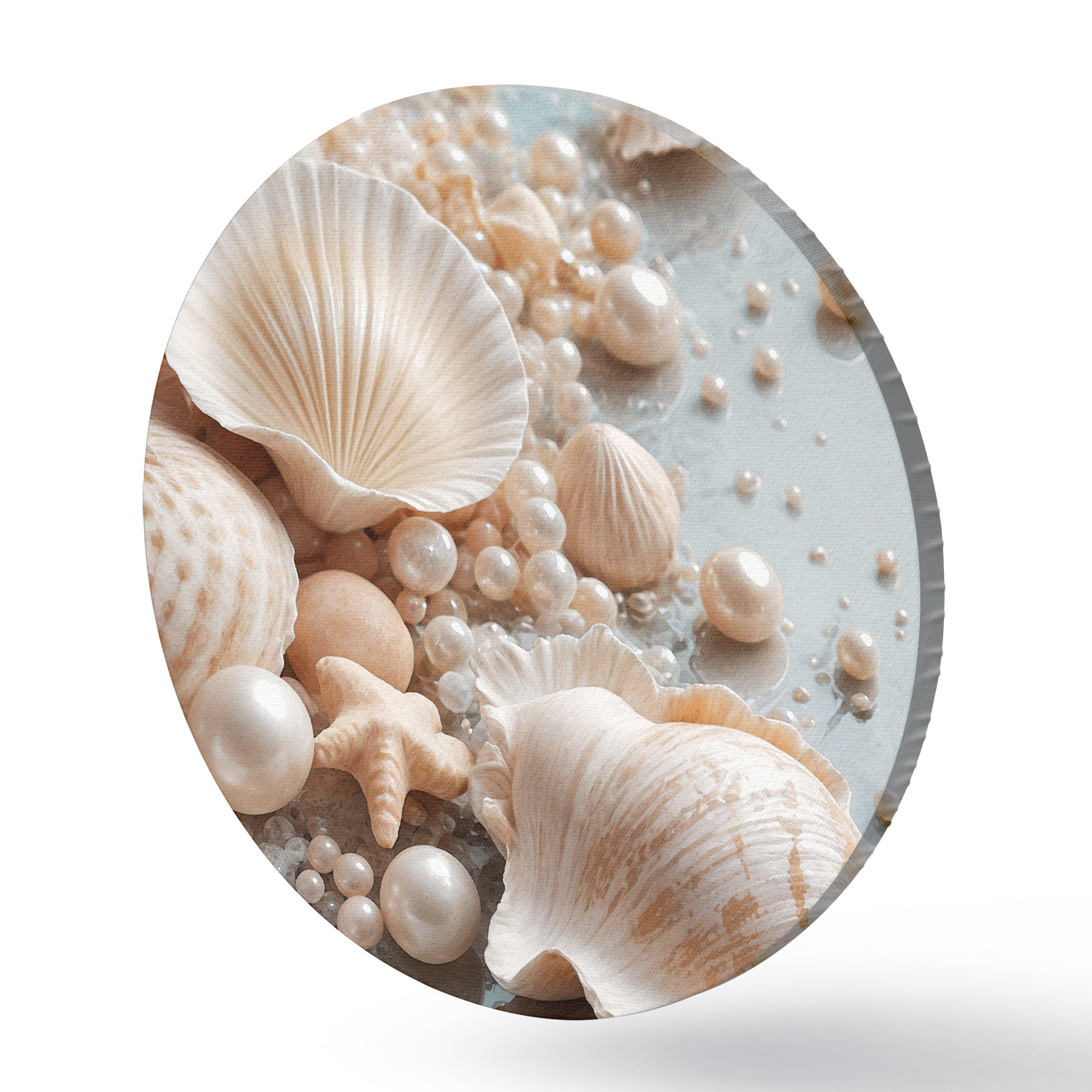Quadri rotondi Conchiglie e perle assortite su sfondo azzurro r38769