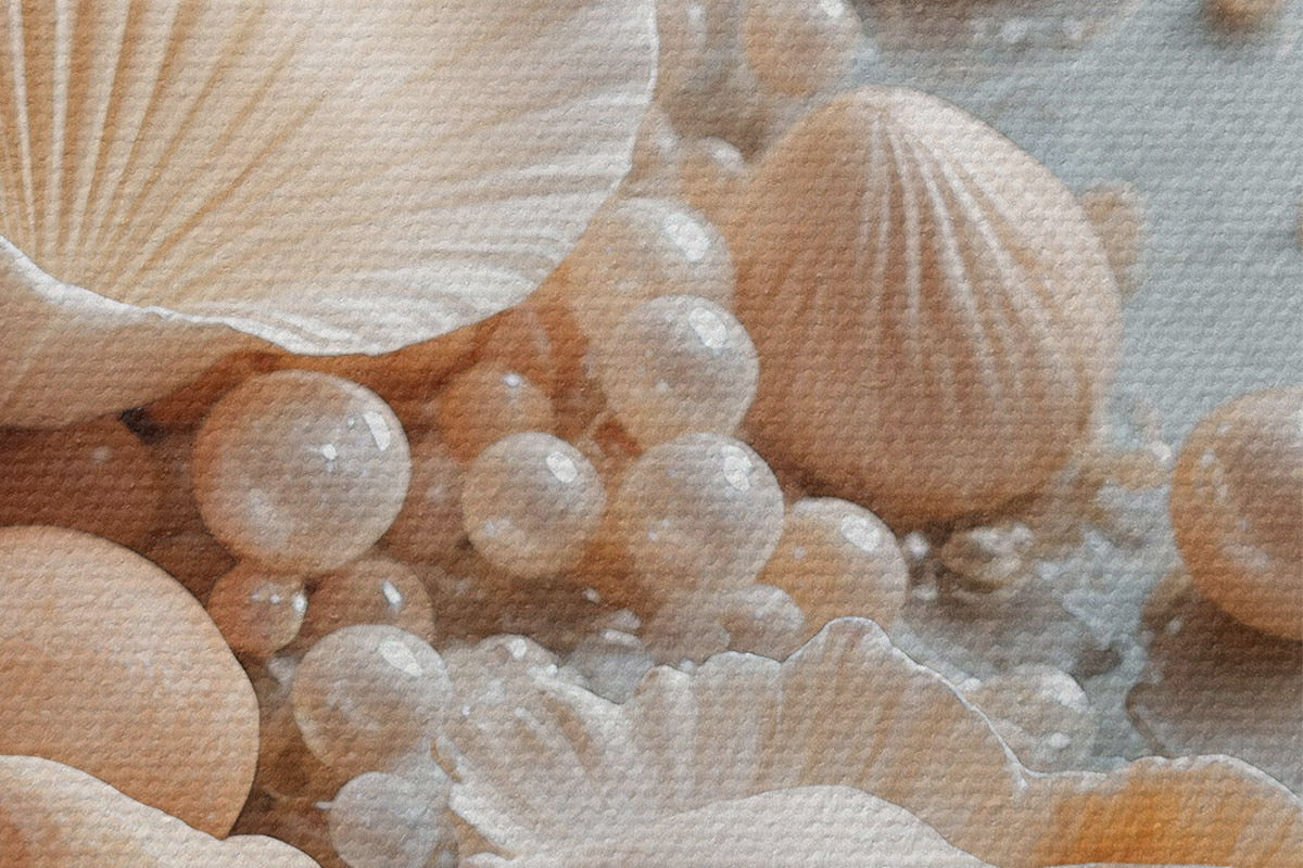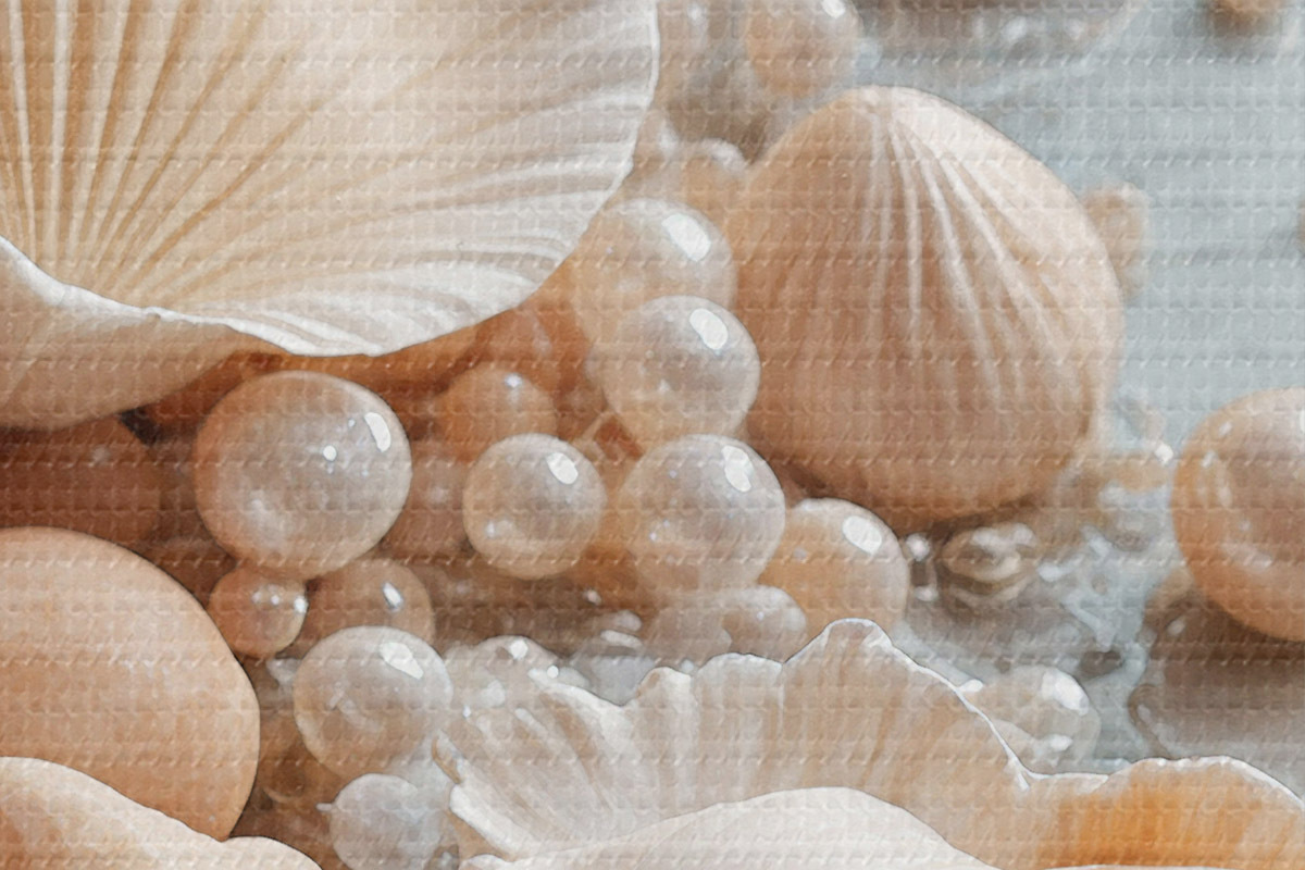 Immagine Conchiglie e perle assortite su sfondo azzurro Nr r38769