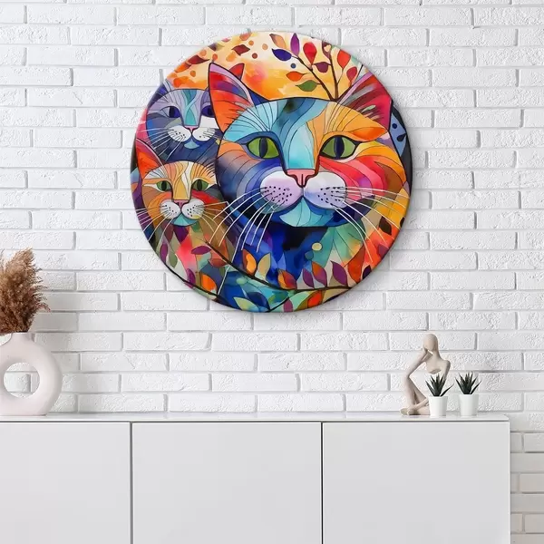 Quadri rotondi Astrazione multicolore con gatti r38814