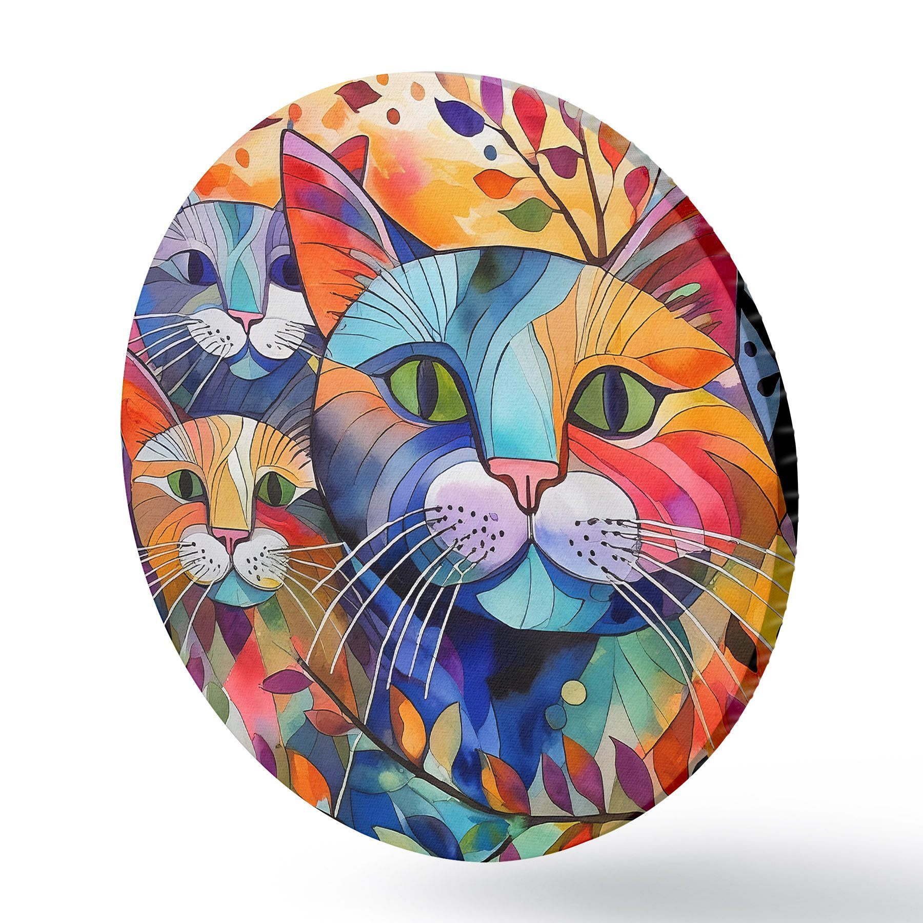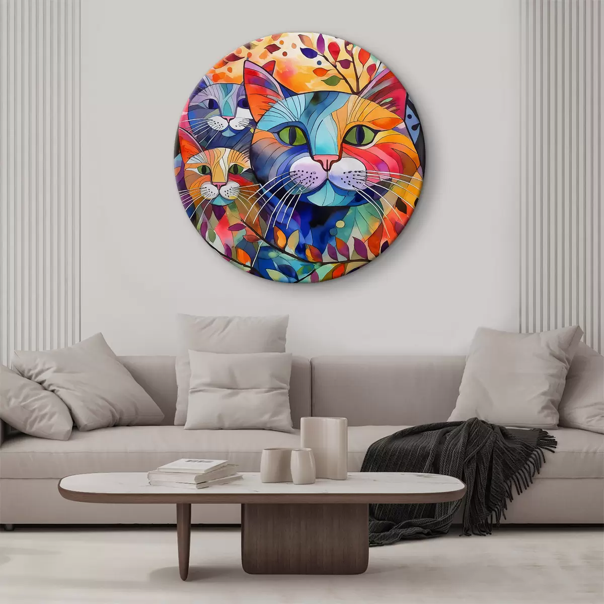 Quadri rotondi Astrazione multicolore con gatti r38814