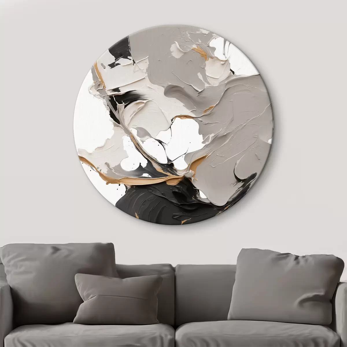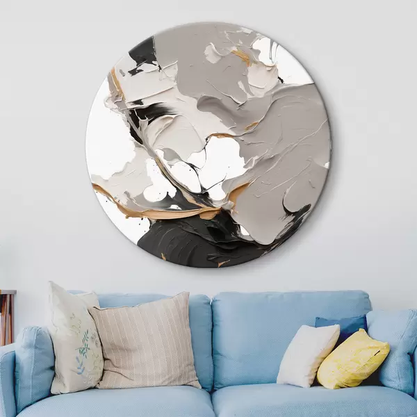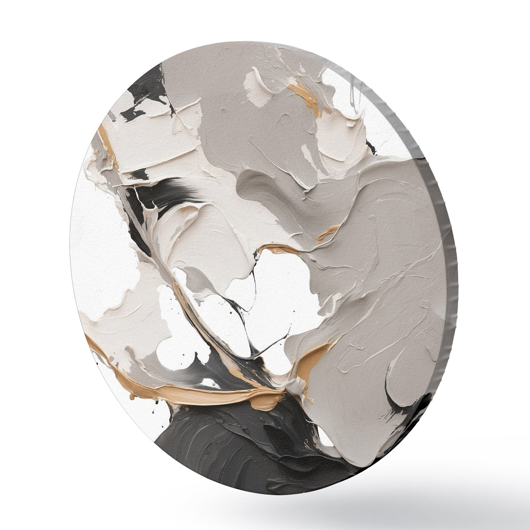 Quadri rotondi Quadro astratto nei colori bianco e grigio r38855