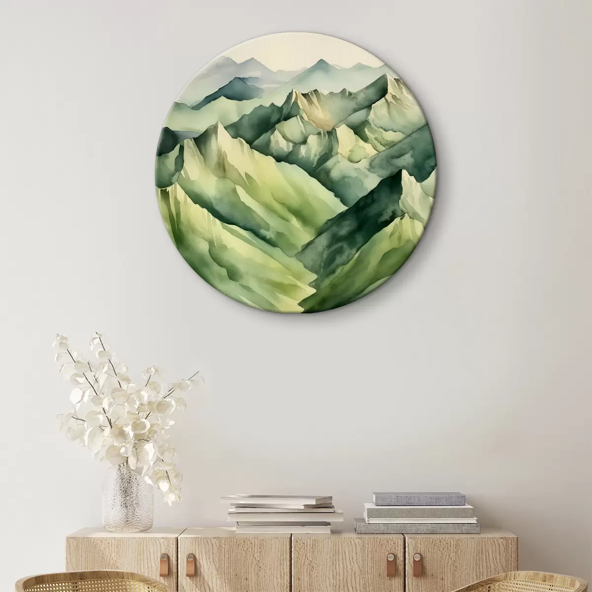 Quadri rotondi Strati eterei di serene tonalità montane r38909