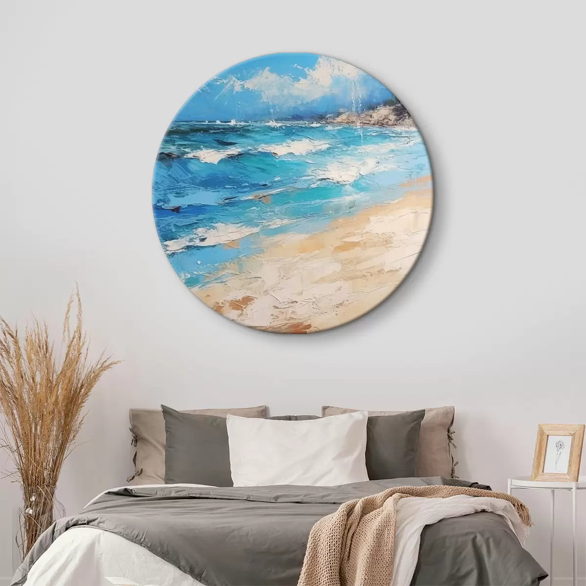 Quadri rotondi Mare, onde, spiaggia, sabbia, pittura a olio, astrazione, paesaggio, paesaggio r38910