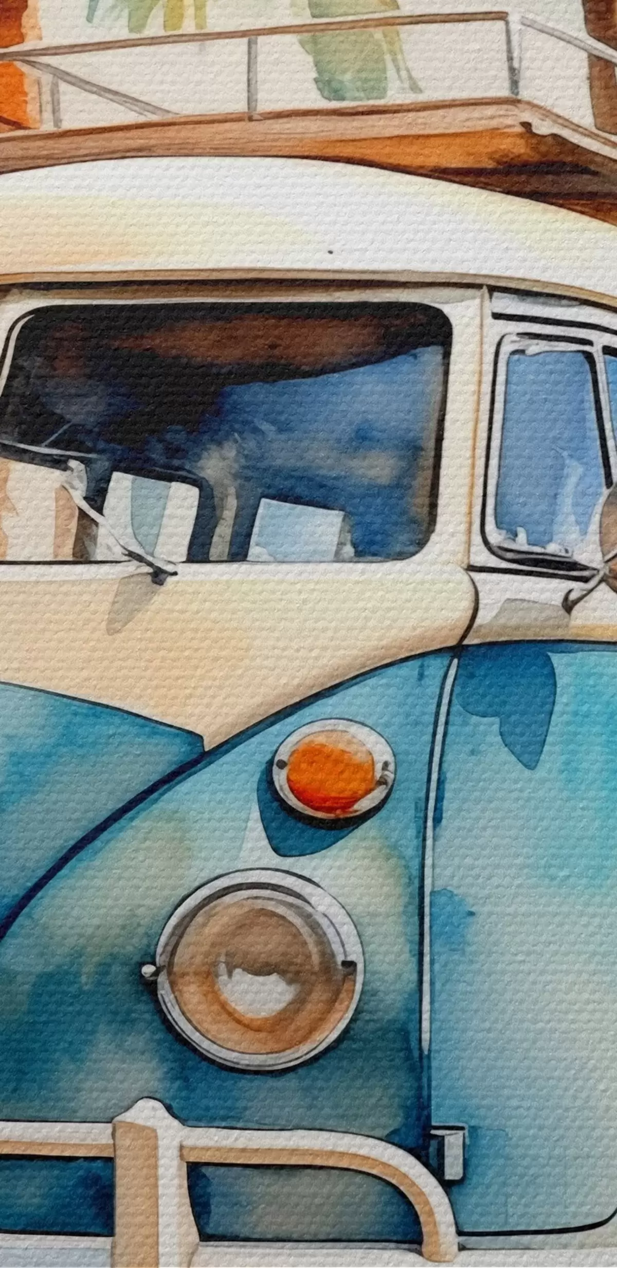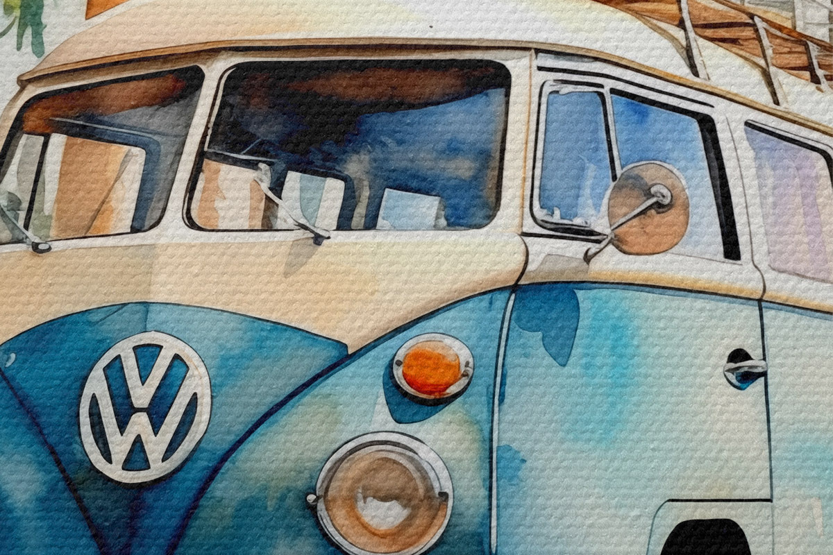 Immagine Un'auto da viaggio è parcheggiata sulla spiaggia su uno sfondo di palme acquerellate Nr r38911