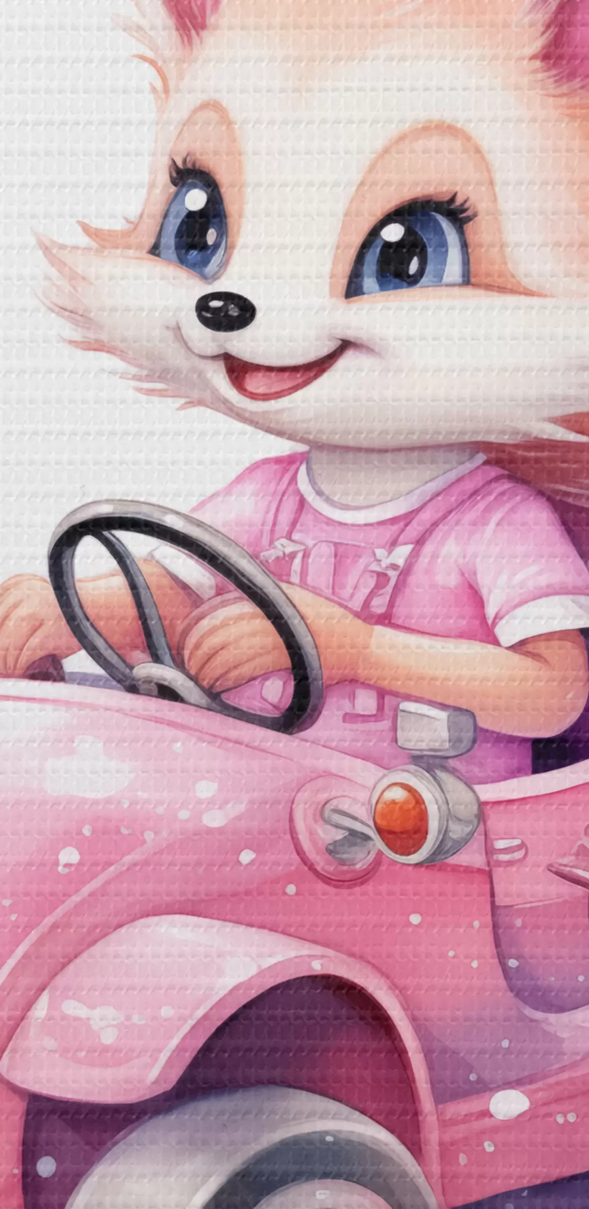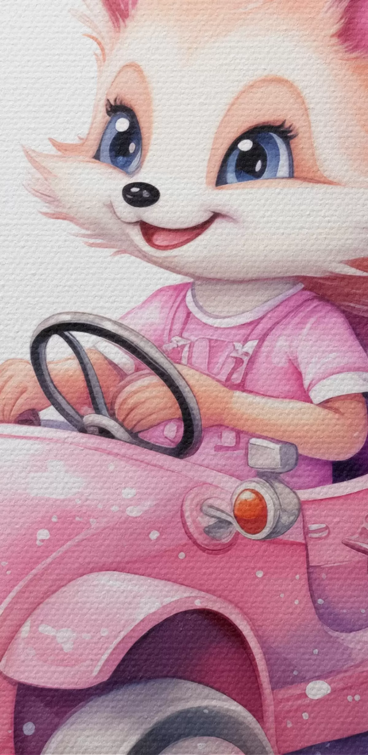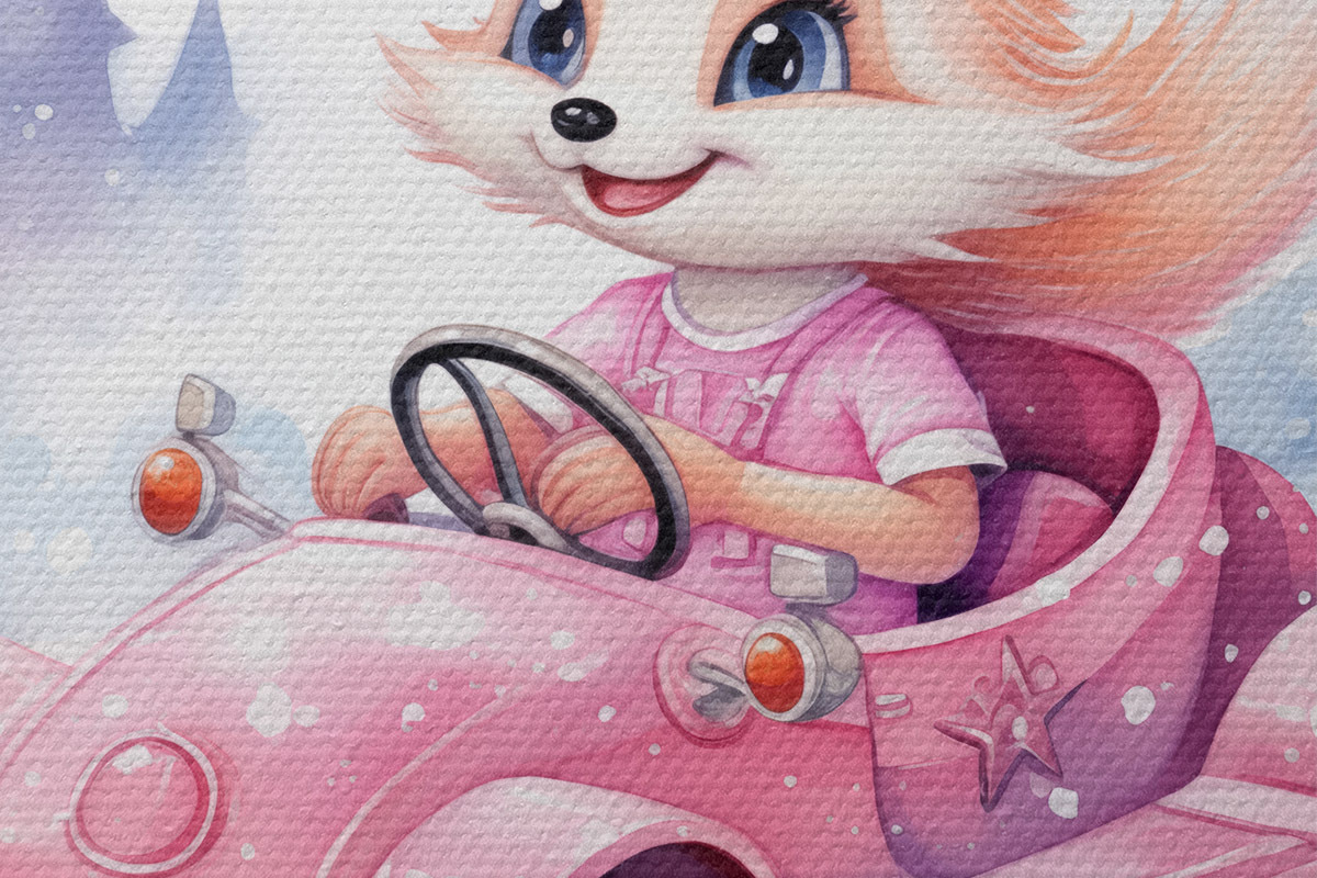 Immagine La piccola volpe cavalca un'illustrazione ad acquerello per bambini in un'auto rosa Nr r38943