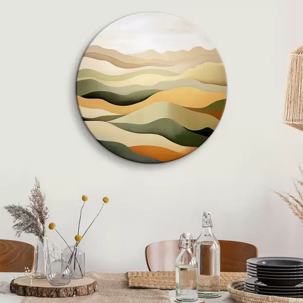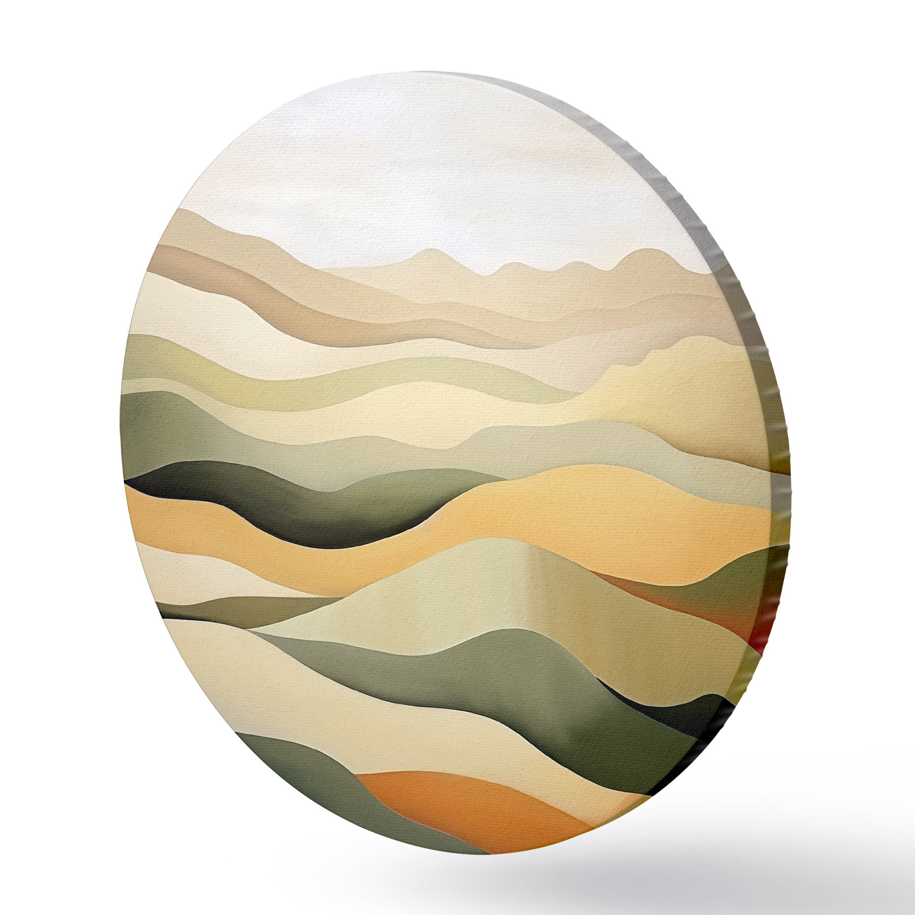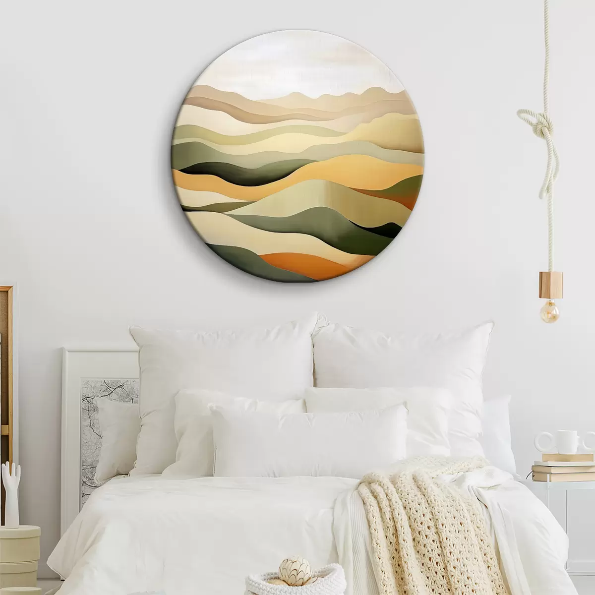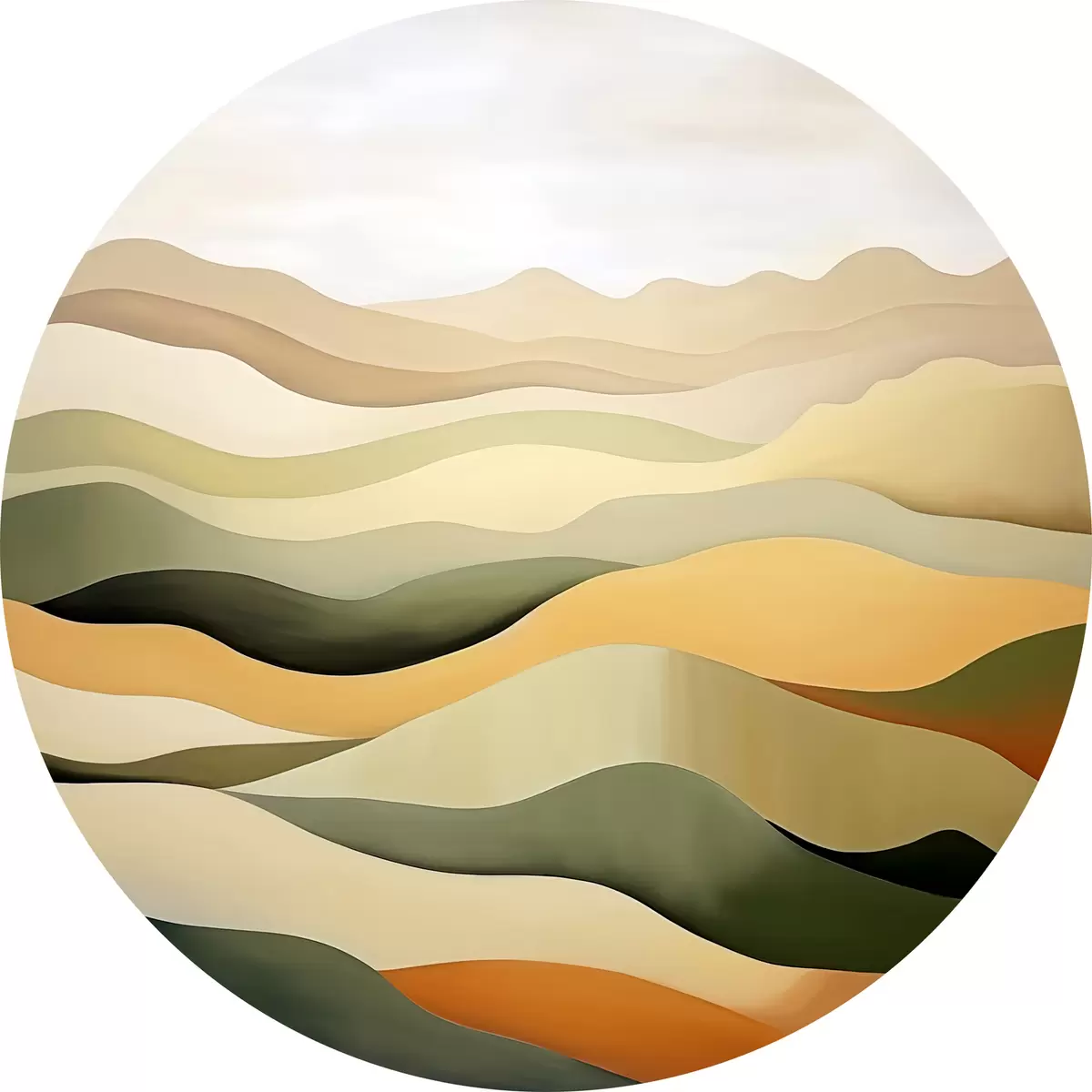 Quadri rotondi Colline, paesaggio astratto, guazzo, verde, ocra, seppia, grigio r38952
