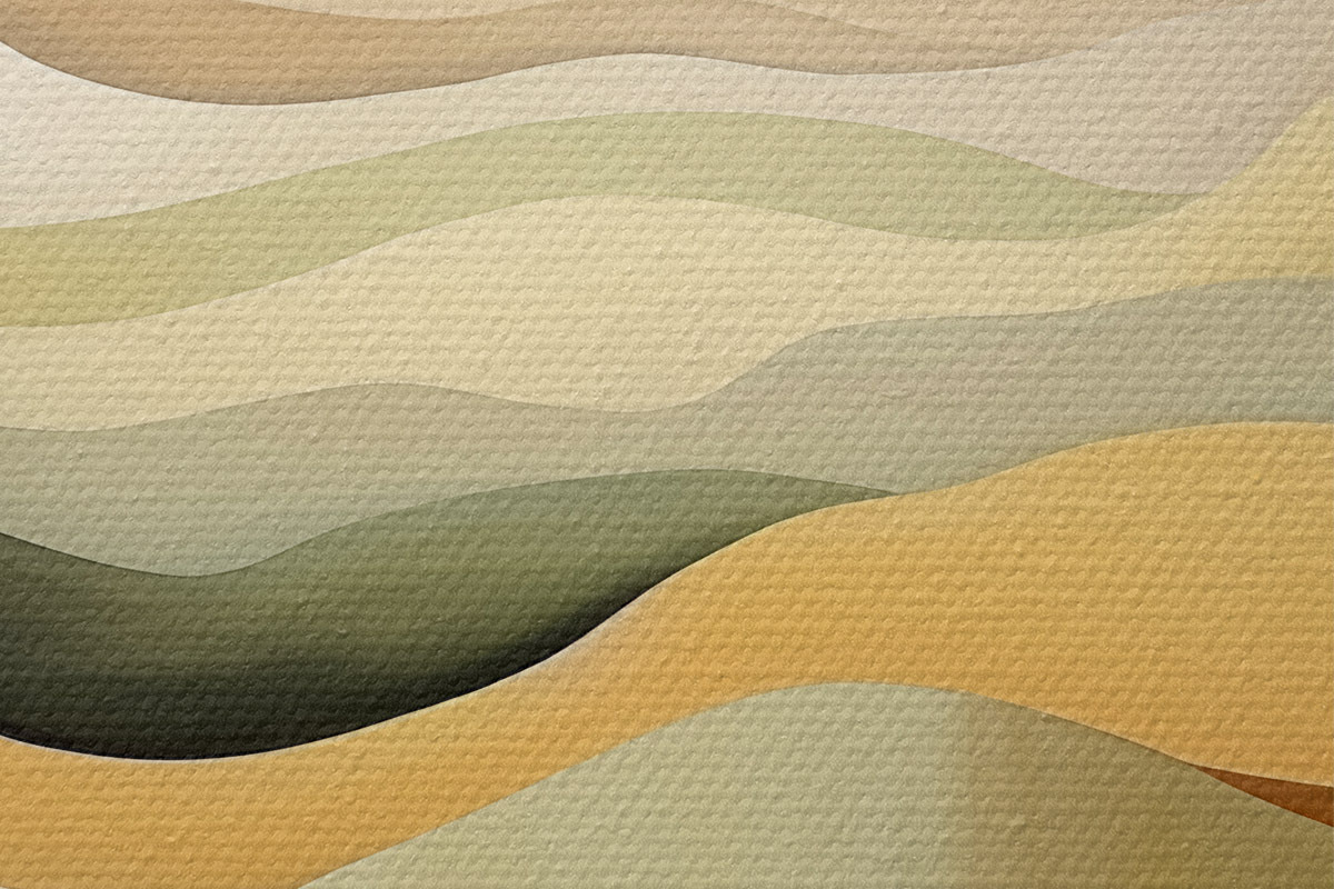 Immagine Colline, paesaggio astratto, guazzo, verde, ocra, seppia, grigio Nr r38952