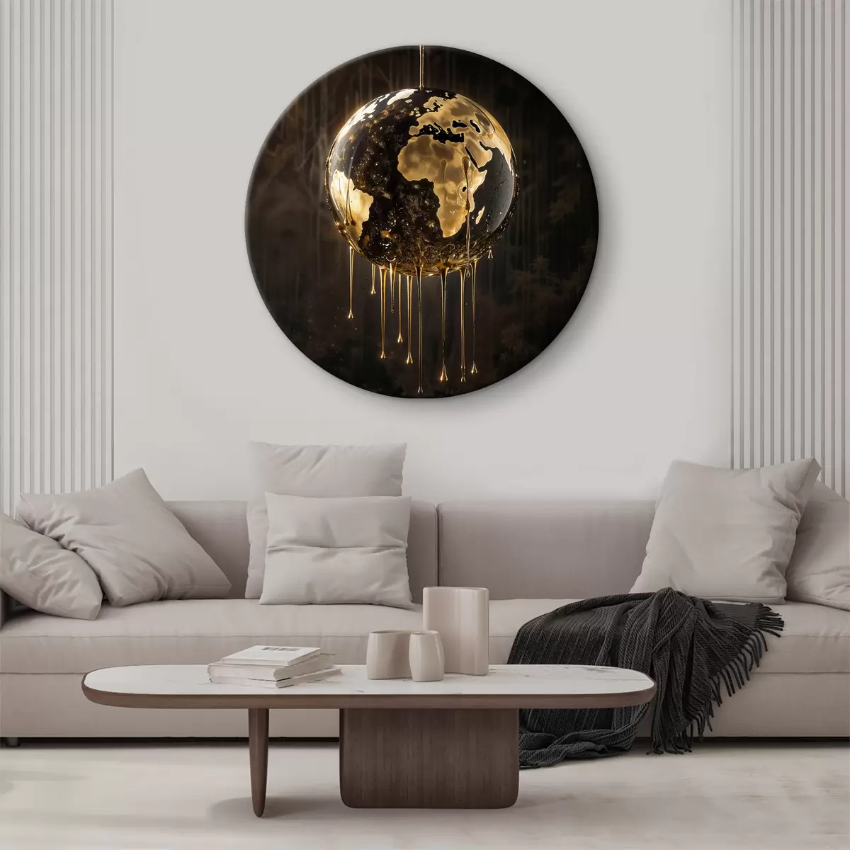 Quadri rotondi Un globo luminoso che raffigura la Terra circondata da liquido gocciolante su uno sfondo scuro r38983