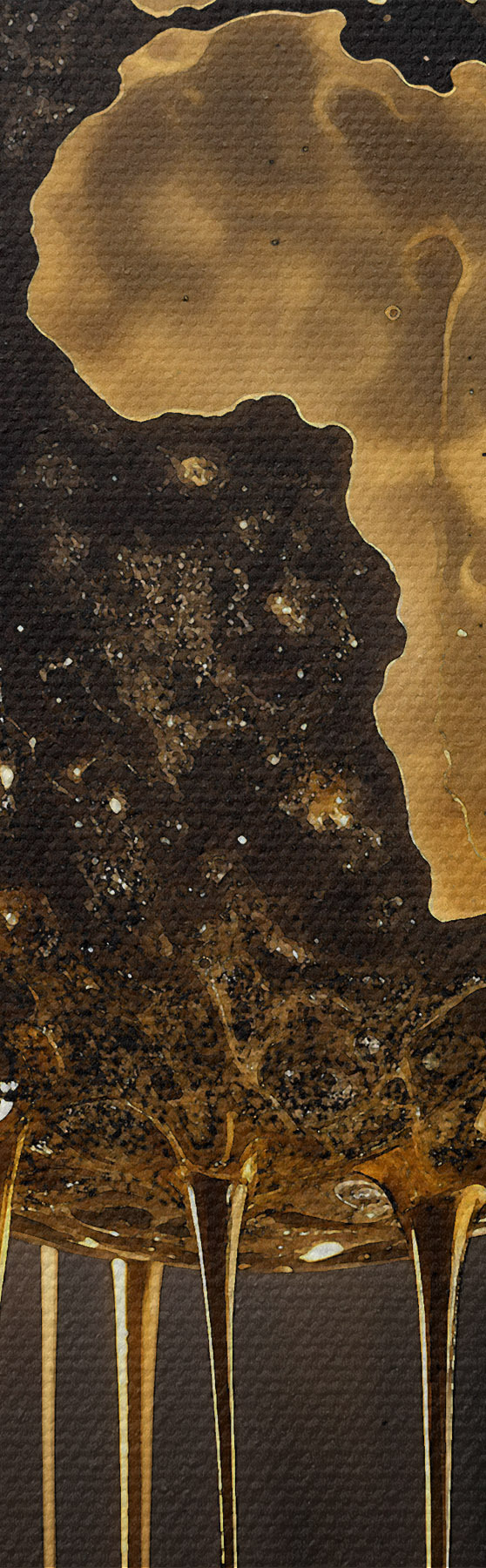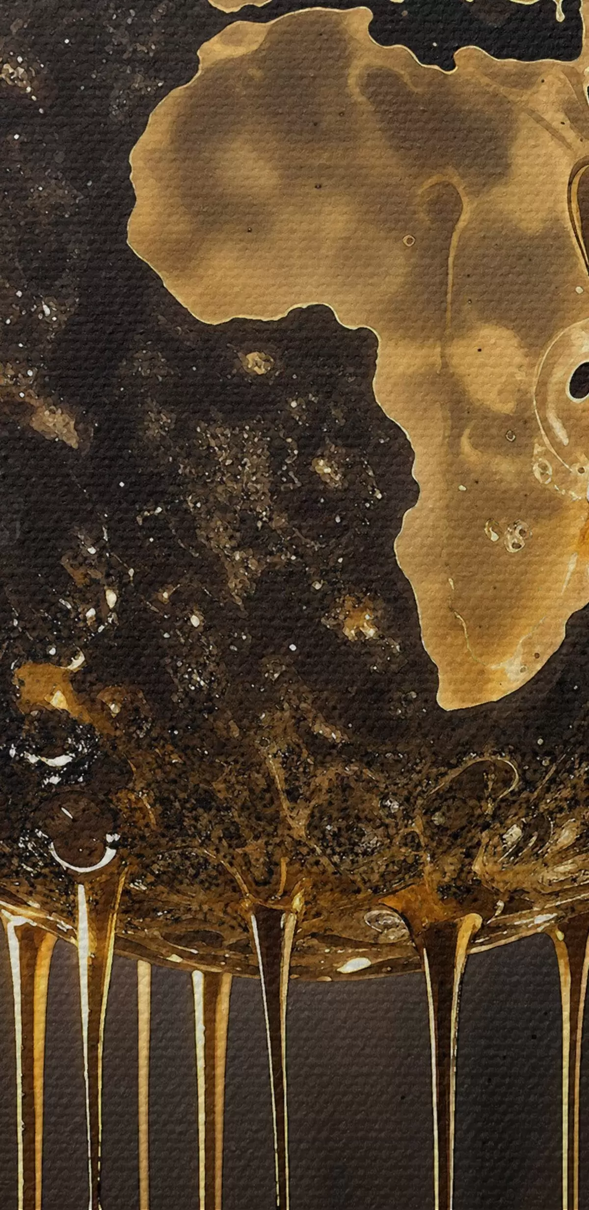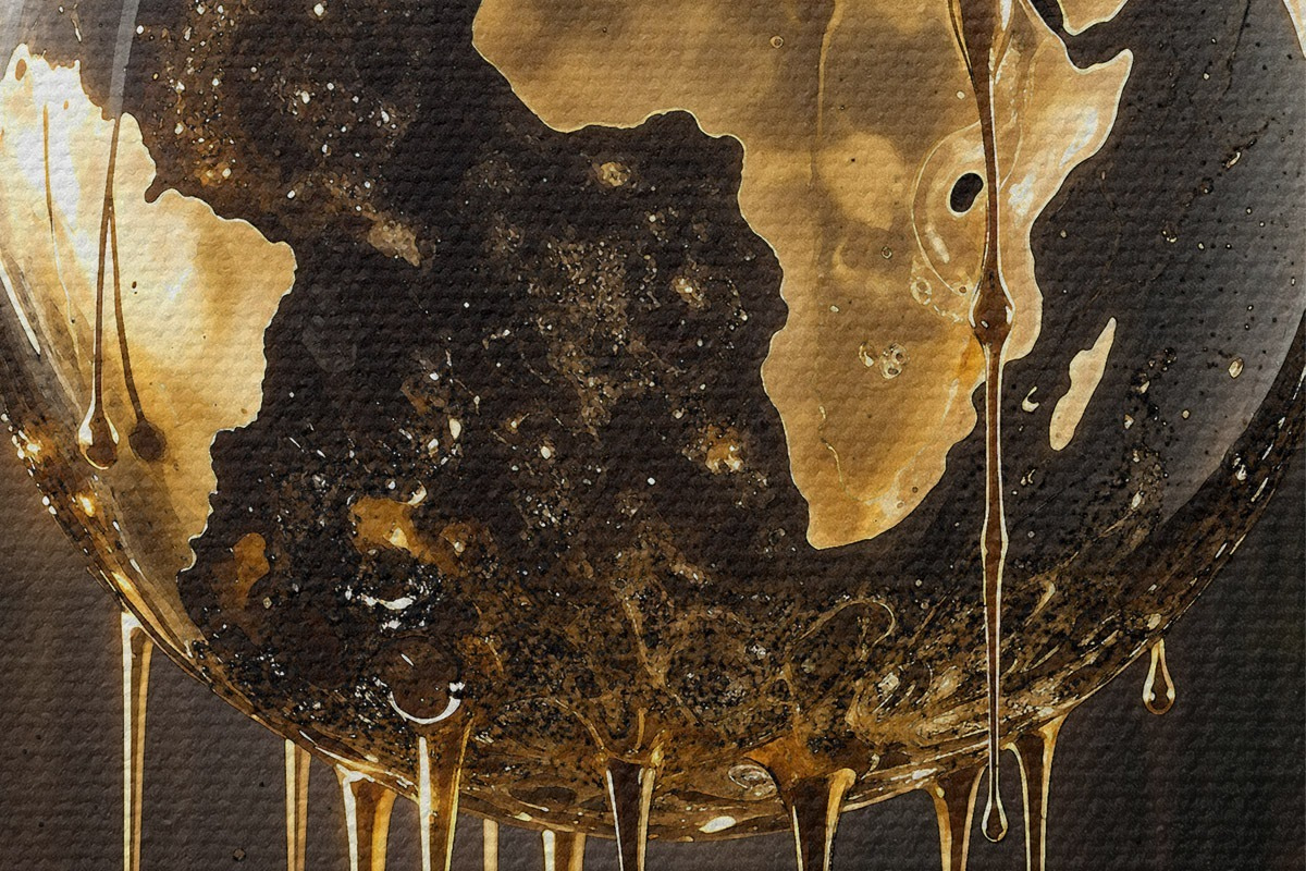 Immagine Un globo luminoso che raffigura la Terra circondata da liquido gocciolante su uno sfondo scuro Nr r38983
