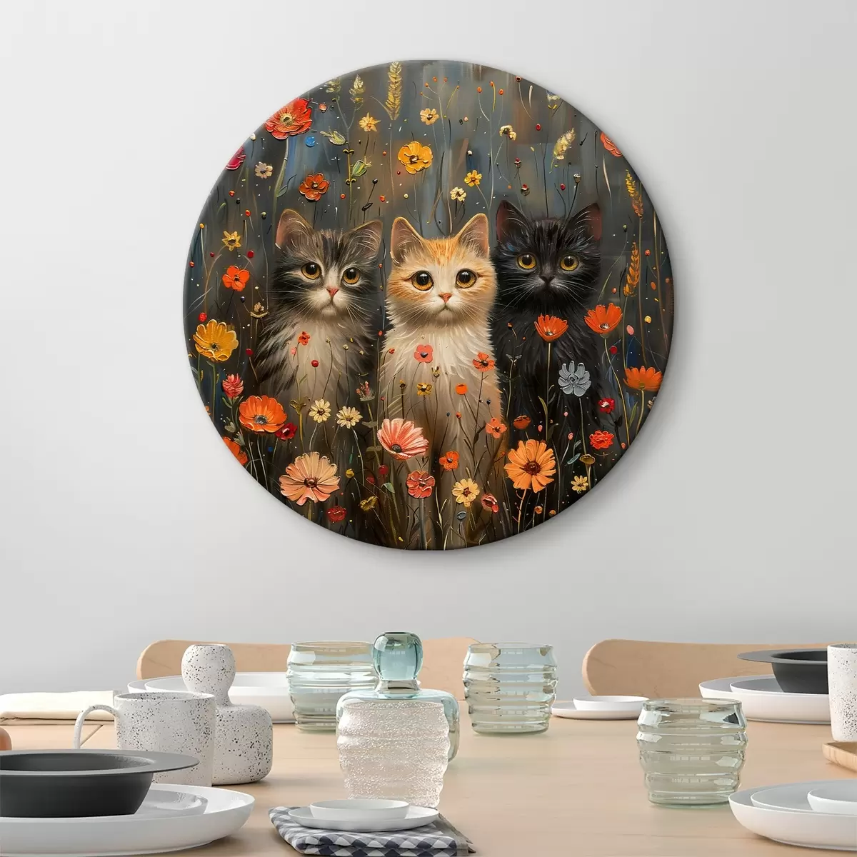 Quadri rotondi Tre gatti tra i fiori di campo r39012