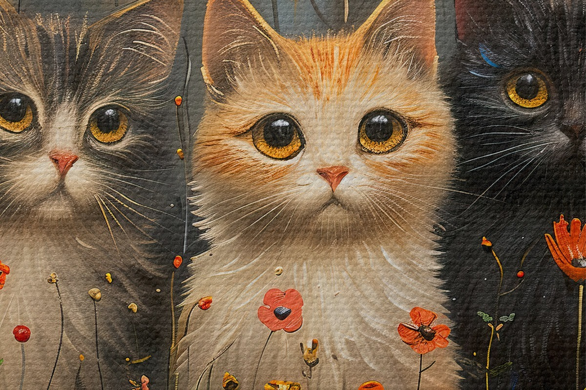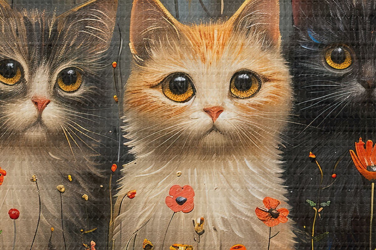 Immagine Tre gatti tra i fiori di campo Nr r39012