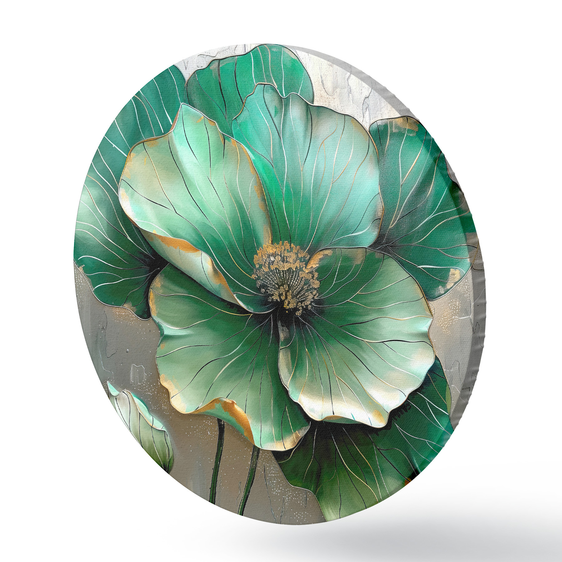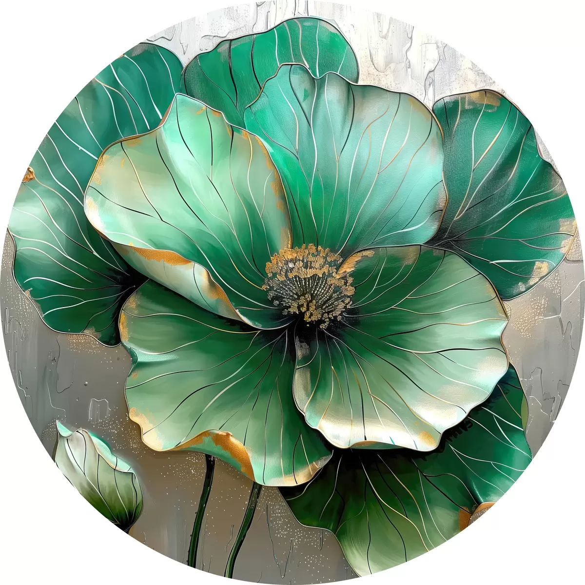 Quadri rotondi Fiore grande di colore verde r39013