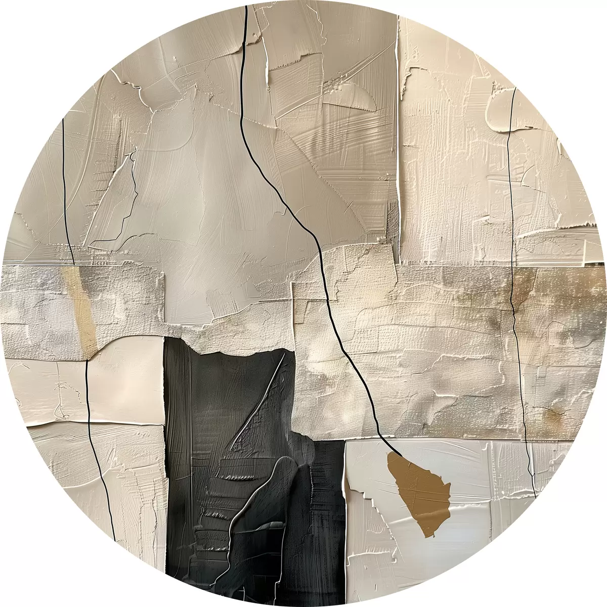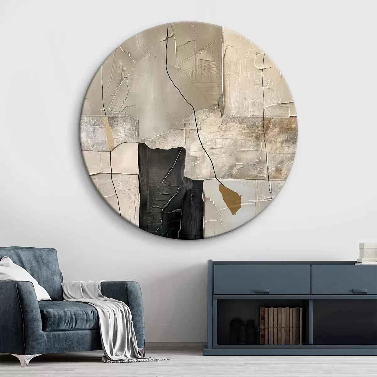 Quadri rotondi Astrazione geometrica beige e nera r39016