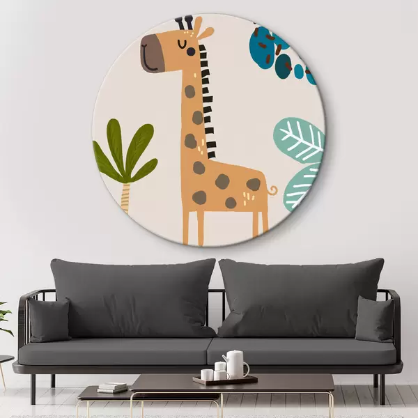 Quadri rotondi Giraffa nella giungla in stile safari, boho r39096