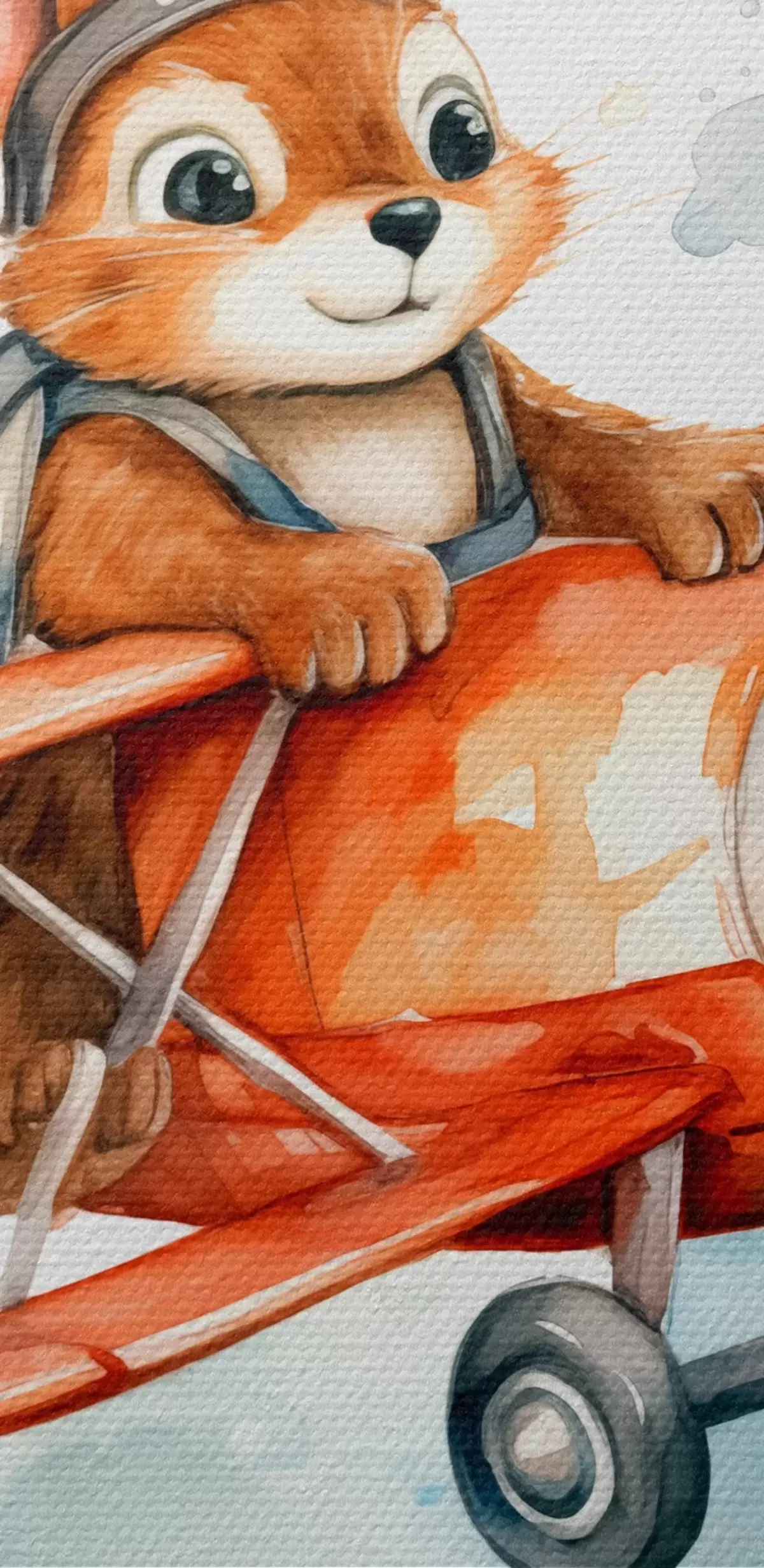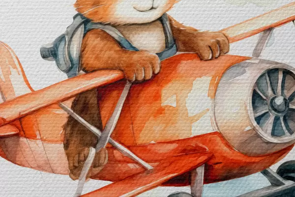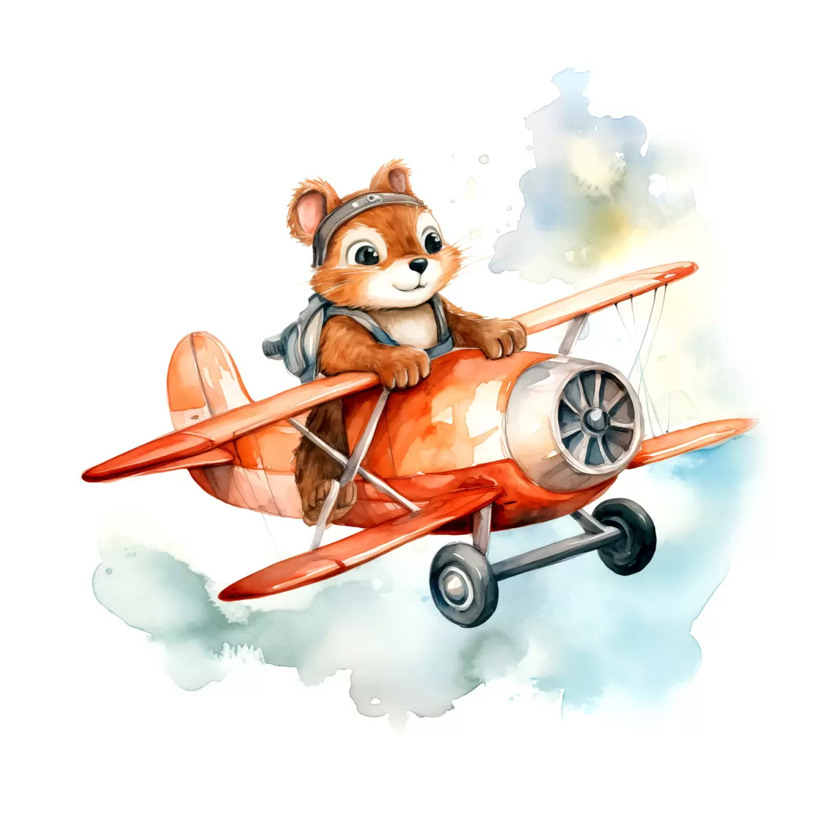 Immagine Lo scoiattolo del bambino vola in un acquerello dell'illustrazione dei bambini dell'aereo rosso Nr r39116