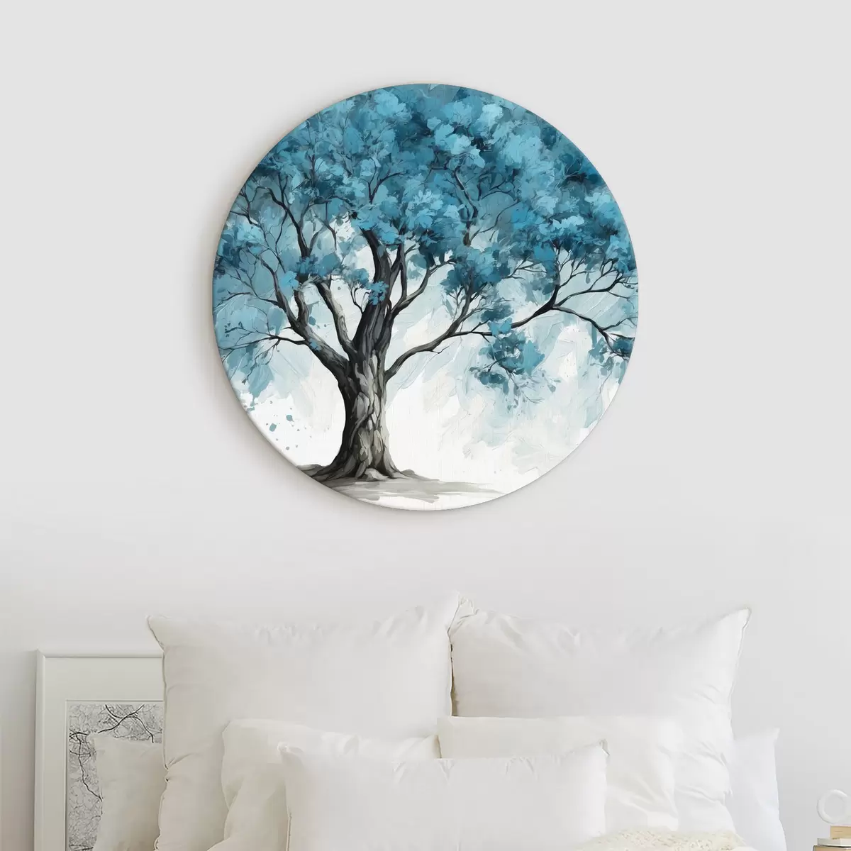 Quadri rotondi Albero con foglie blu su sfondo bianco r39153