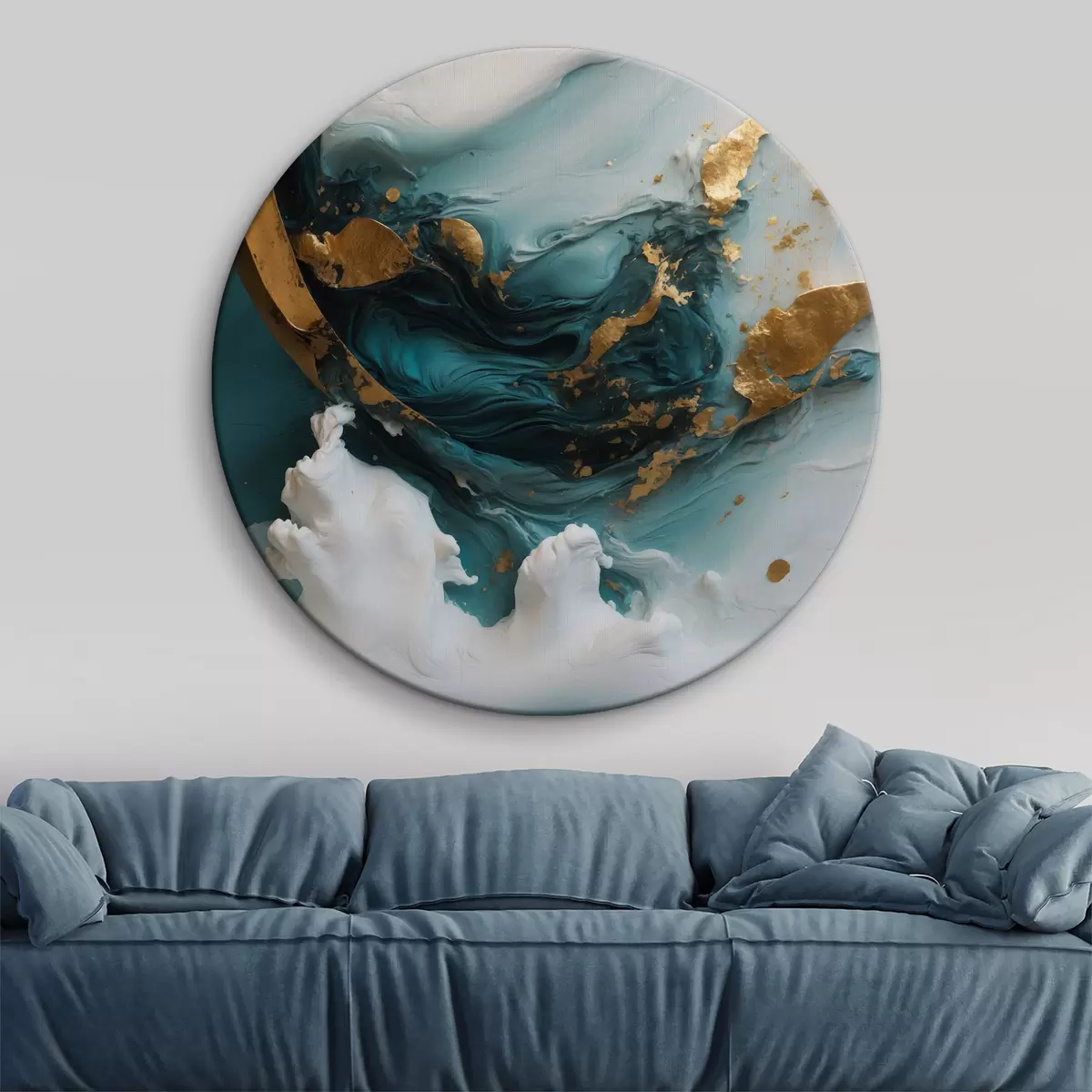 Quadri rotondi Astrazione con colori blu e bianchi r39154