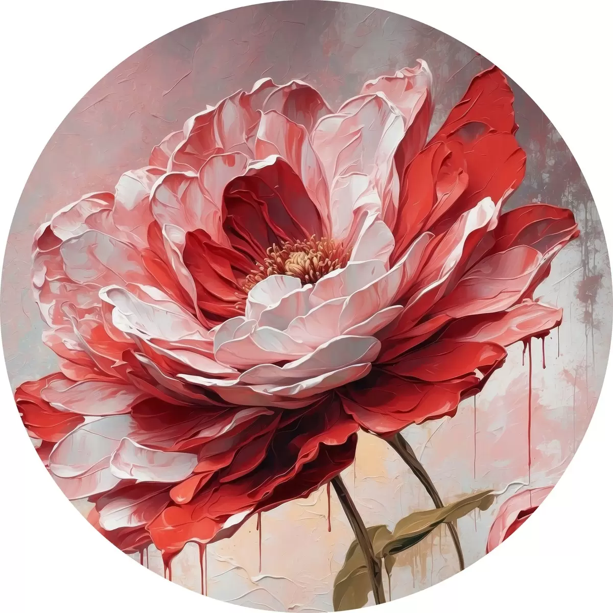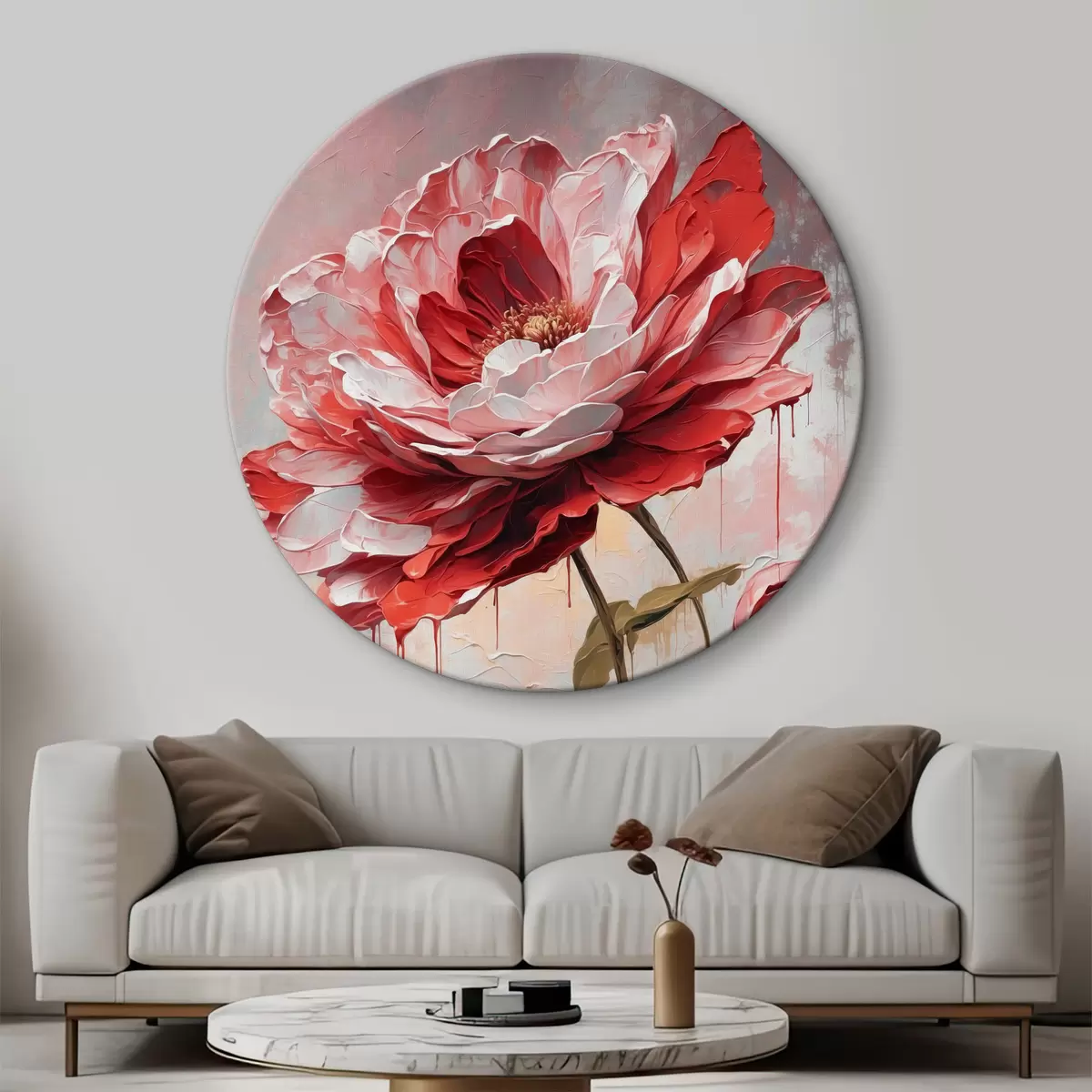 Quadri rotondi Fiore rosso su sfondo bianco-grigio r39173