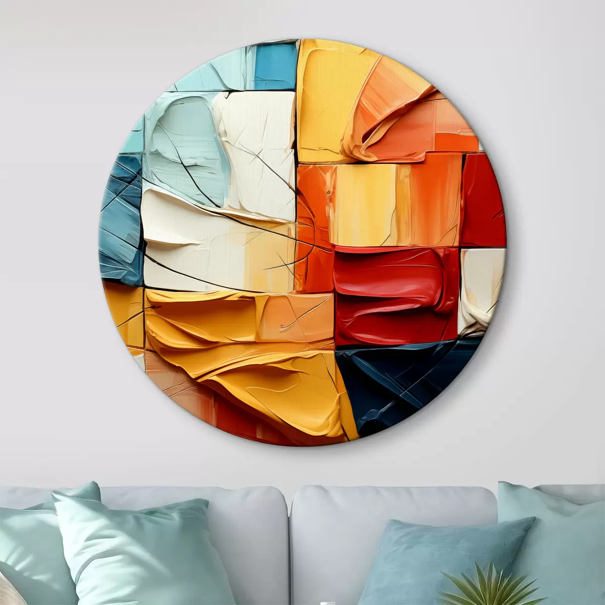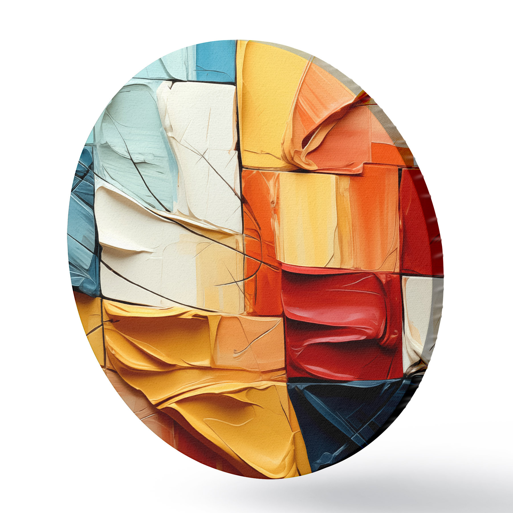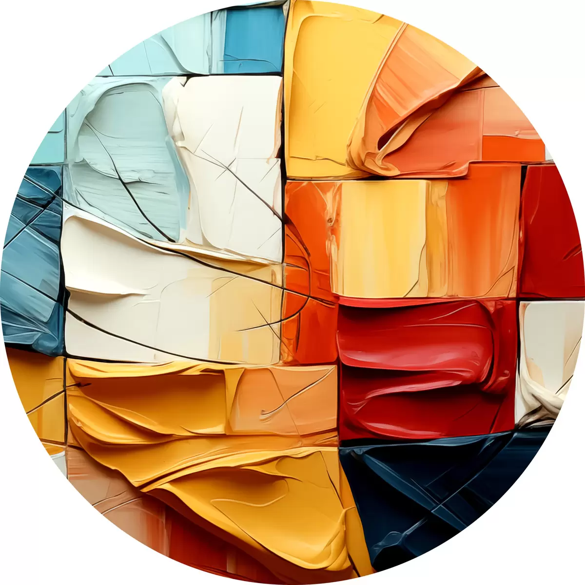 Quadri rotondi Pezzi di vernice brillante con crepe, quadrati, pittura cubista r39196