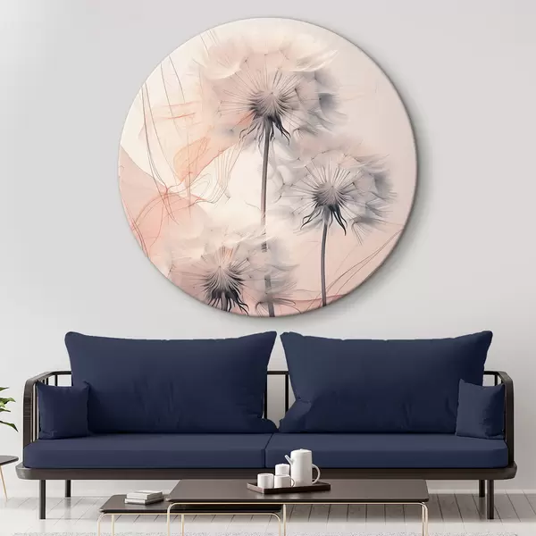 Quadri rotondi Denti di leone delicati su uno sfondo astratto r39199