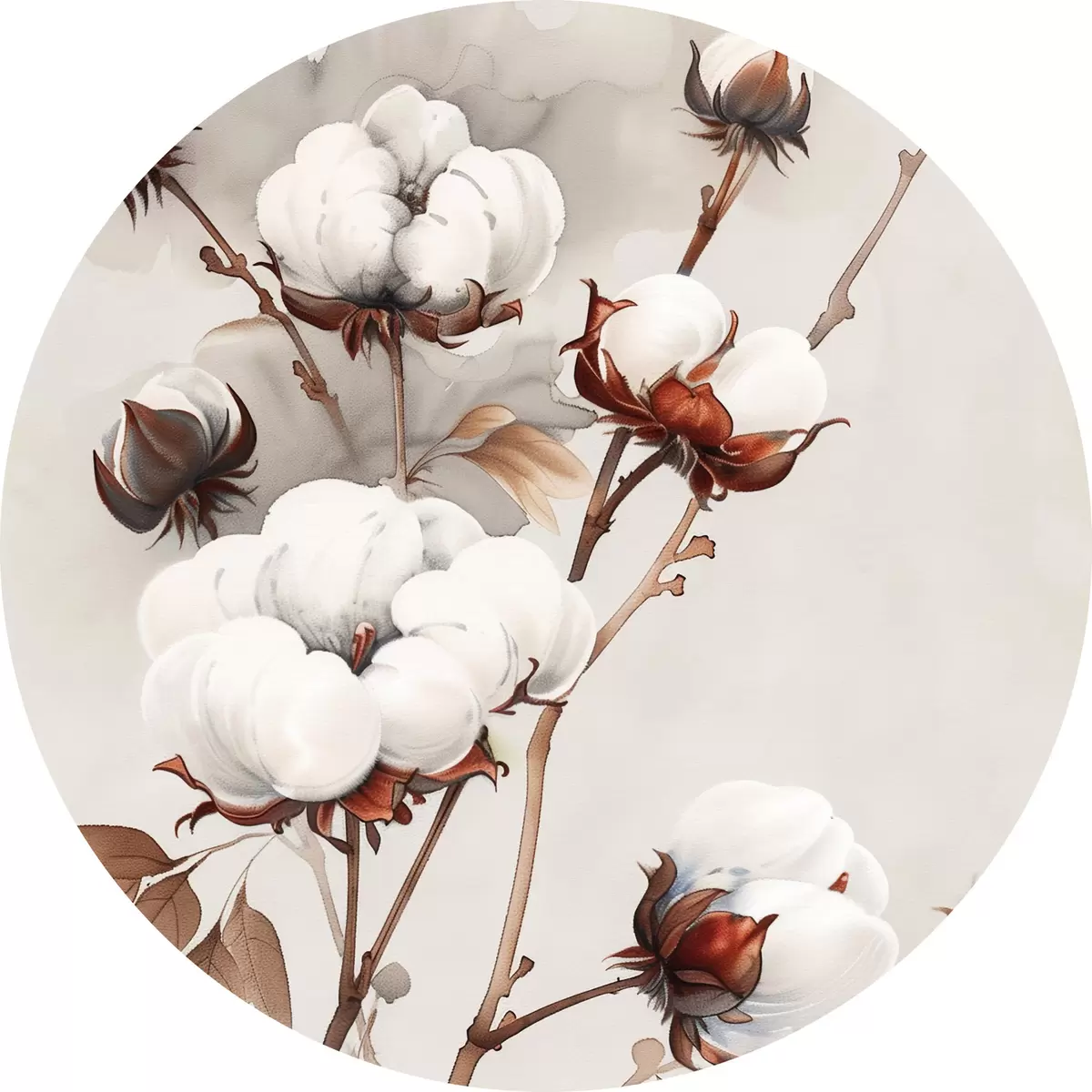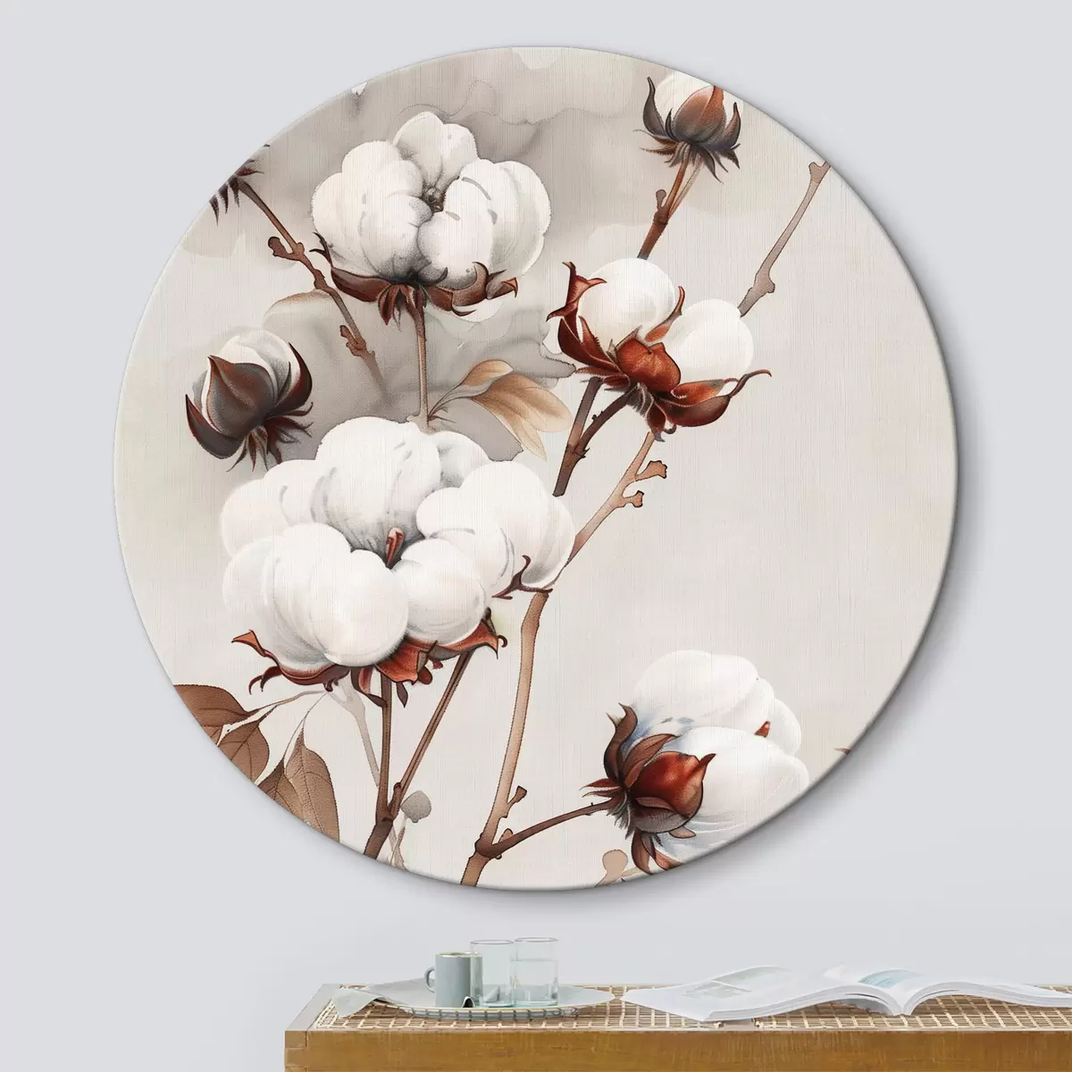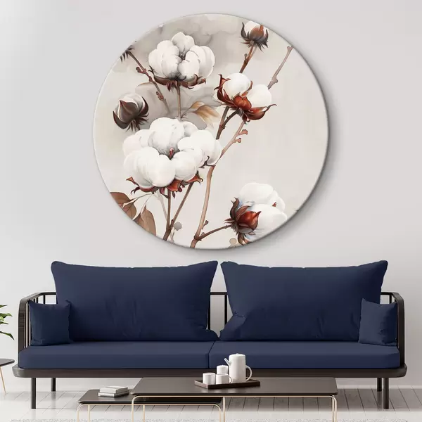 Quadri rotondi Rami di cotone in stile acquerello r39215