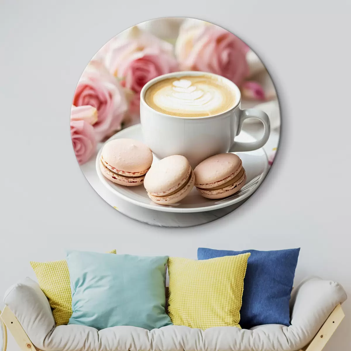 Quadri rotondi Tazza di caffè su un delicato sfondo floreale r39232