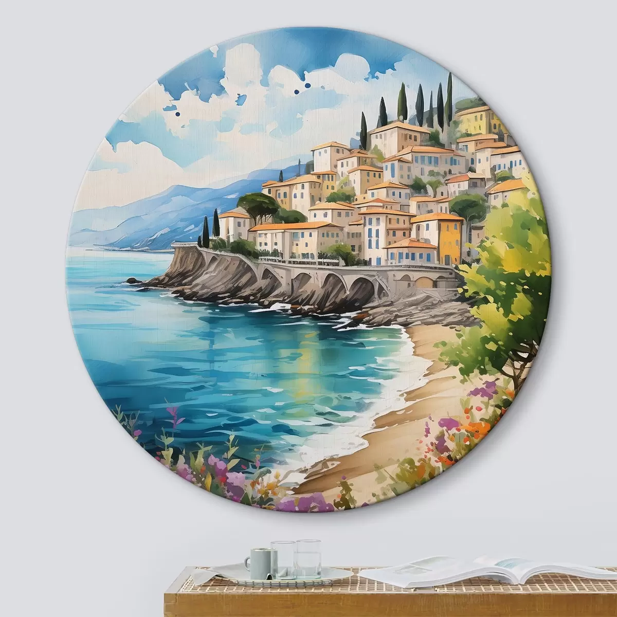 Quadri rotondi pittoresco mare in una città italiana r39298