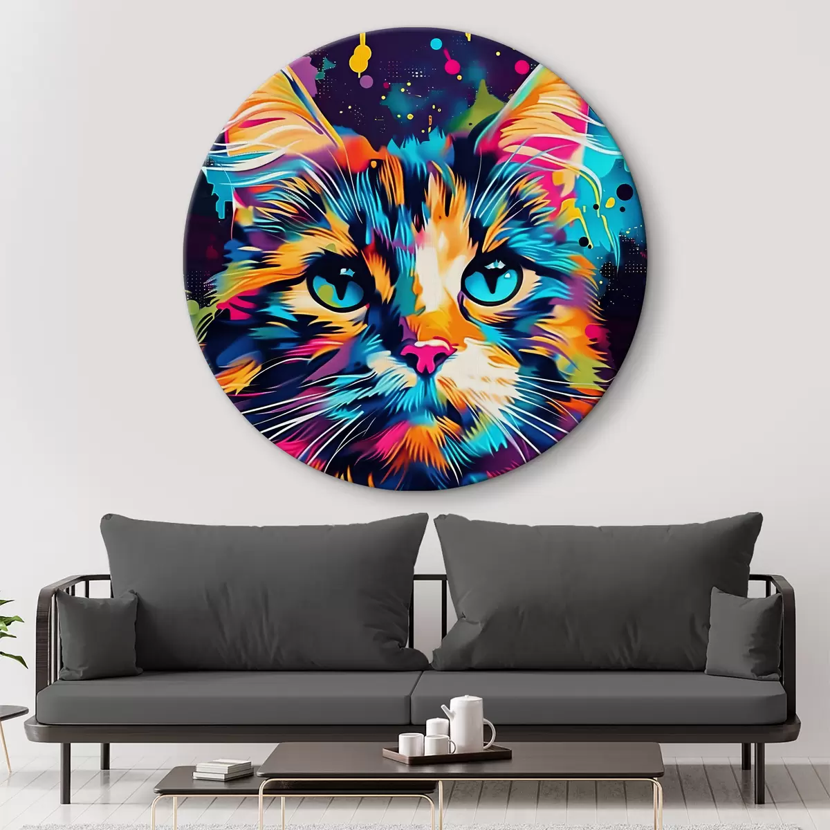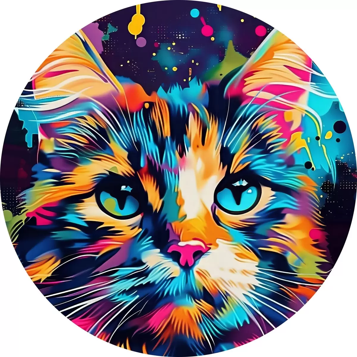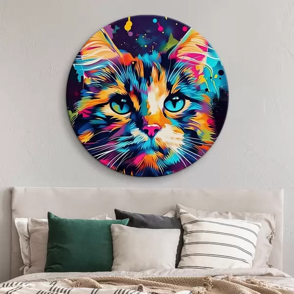 Quadri rotondi Gatto a colori r39314