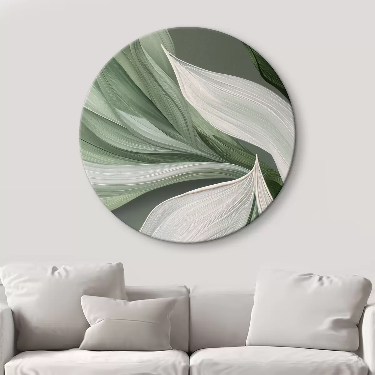 Quadri rotondi voluminoso velo astratto nei colori bianco e verde r39327