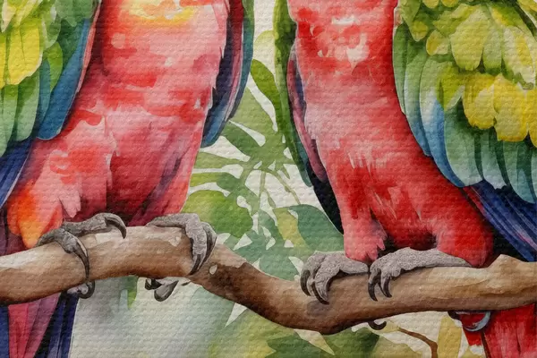 Immagine Due pappagalli Ara luminosi seduti su un ramo acquerello Nr r39333