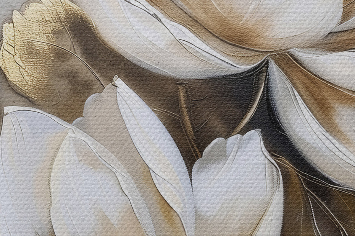 Sono disponibili tre tipi di materiale per l'ordinazione: Economic Canvas - materiale denso e resistente per la stampa digitale, identico alla tela del pittore, superficie impermeabile, riproduzione realistica dei dettagli, materiale a grana media. Premium Canvas - la trama ricorda la tela di un pittore (piccoli fili intrecciati). Riproduzione morbida e dettagliata dell'immagine su una superficie opaca. Eco-Premium - tessuto di alta qualità in 100% cotone. Grazie alle fibre naturali di cotone, il materiale è durevole e resistente all'usura. Eccellente riproduzione dei colori e dei dettagli.