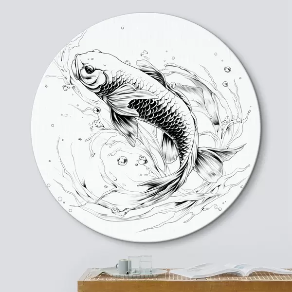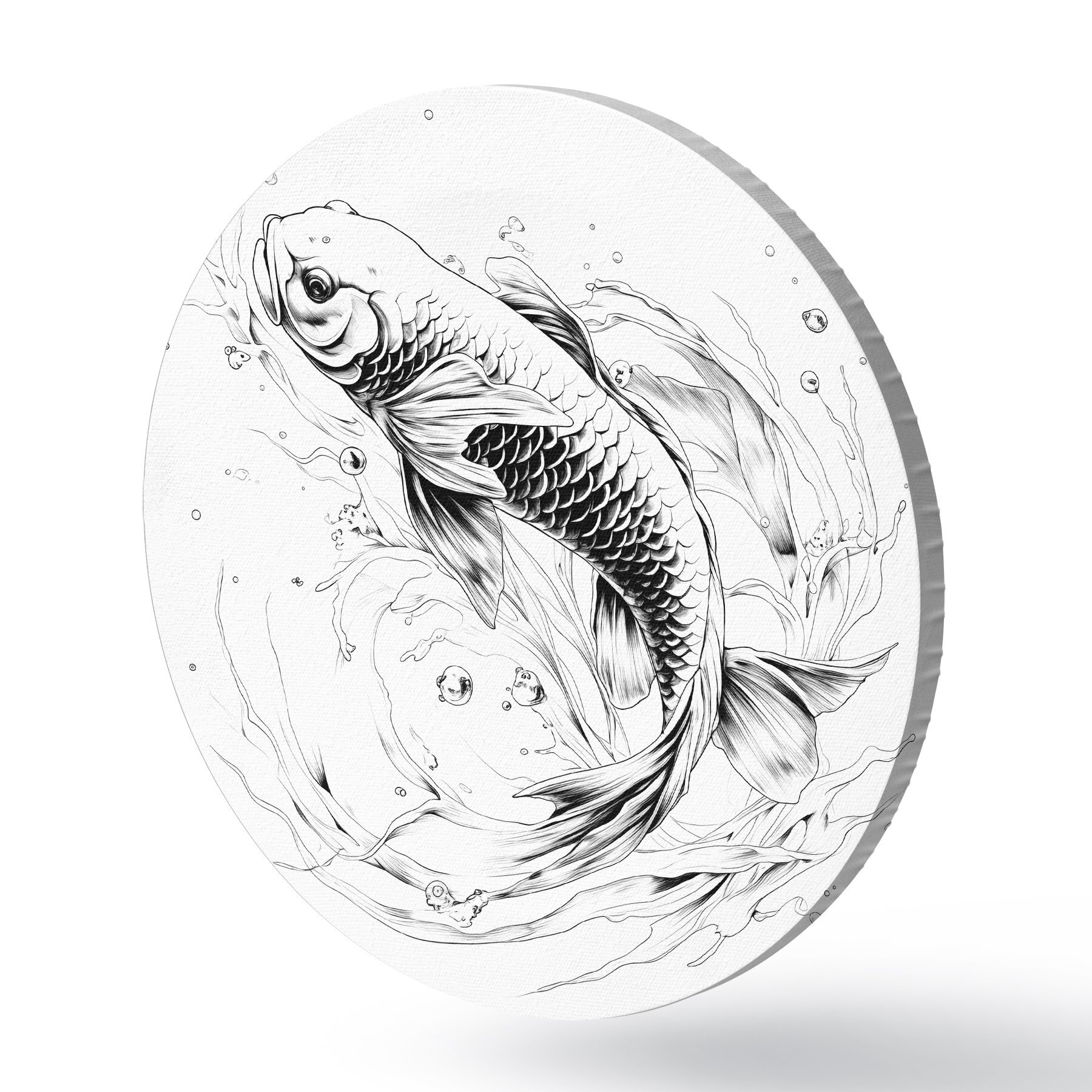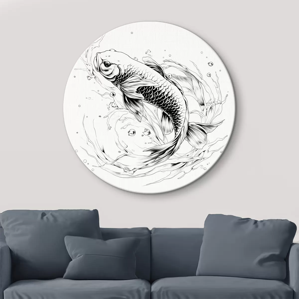 Quadri rotondi Disegno a tratteggio monocromatico del pesce Koi r39433