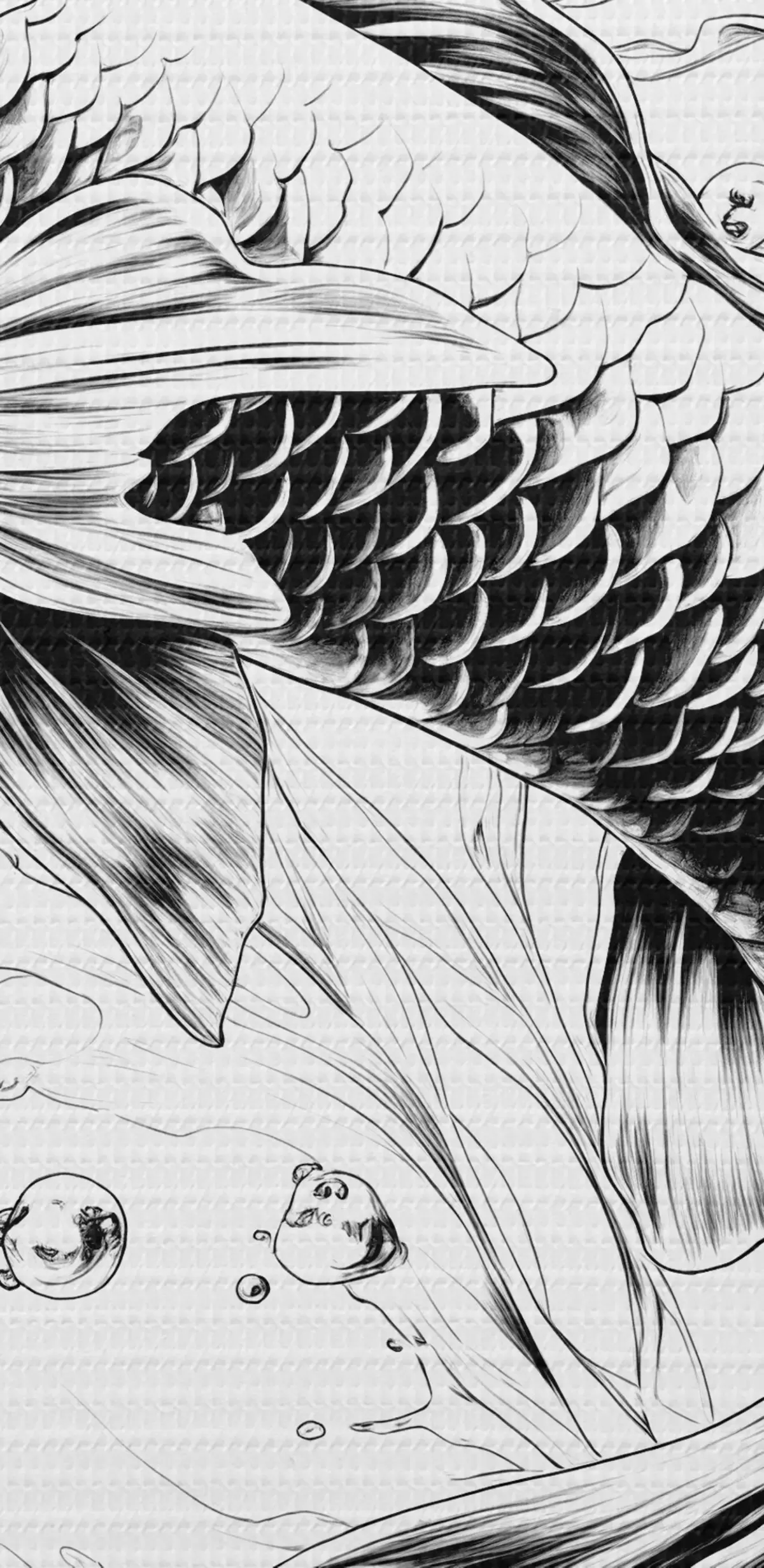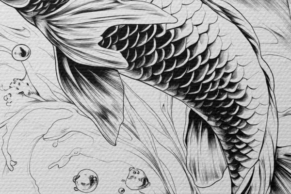 Immagine Disegno a tratteggio monocromatico del pesce Koi Nr r39433
