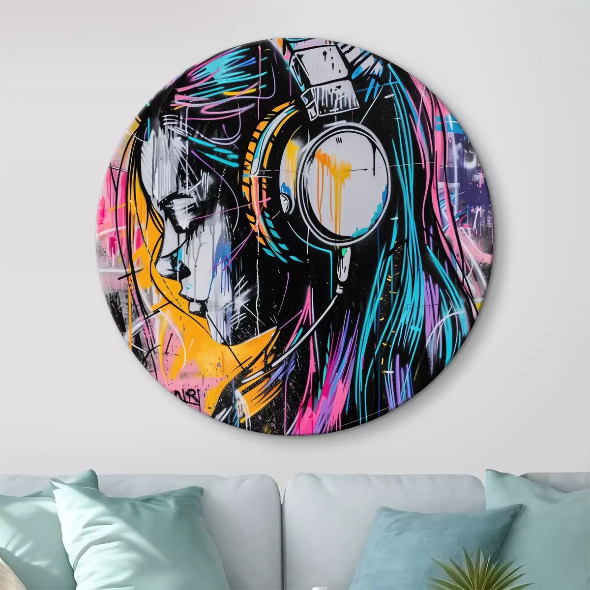 Quadri rotondi Donna con le cuffie in stile graffiti r39443