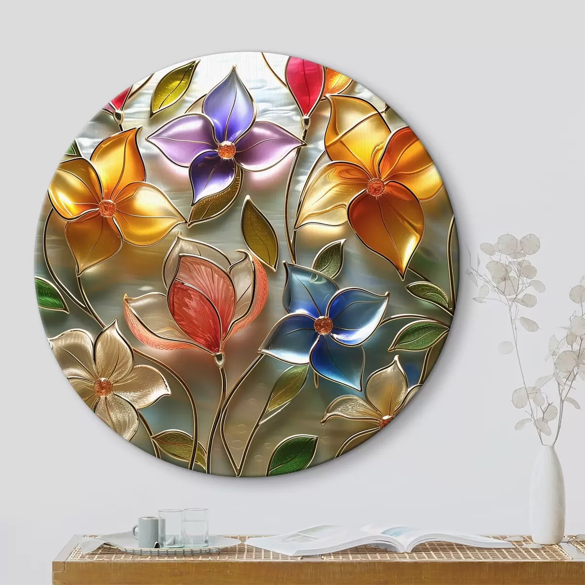 Quadri rotondi Orchidee di vetro colorato che brillano al sole r39447