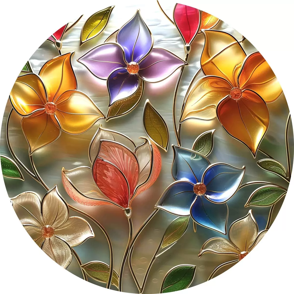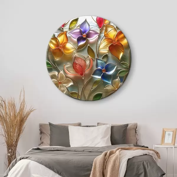 Quadri rotondi Orchidee di vetro colorato che brillano al sole r39447