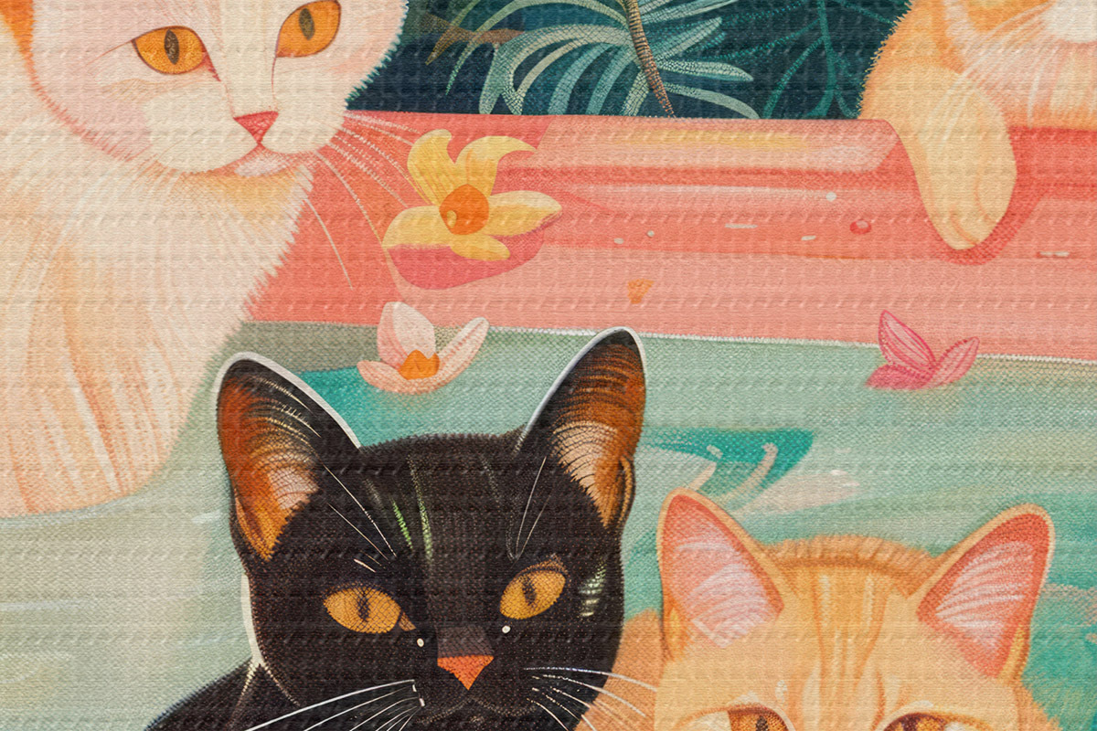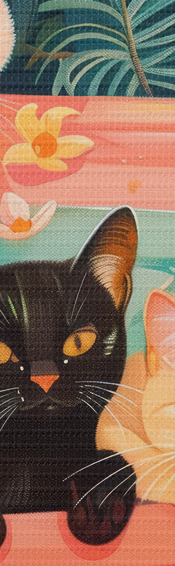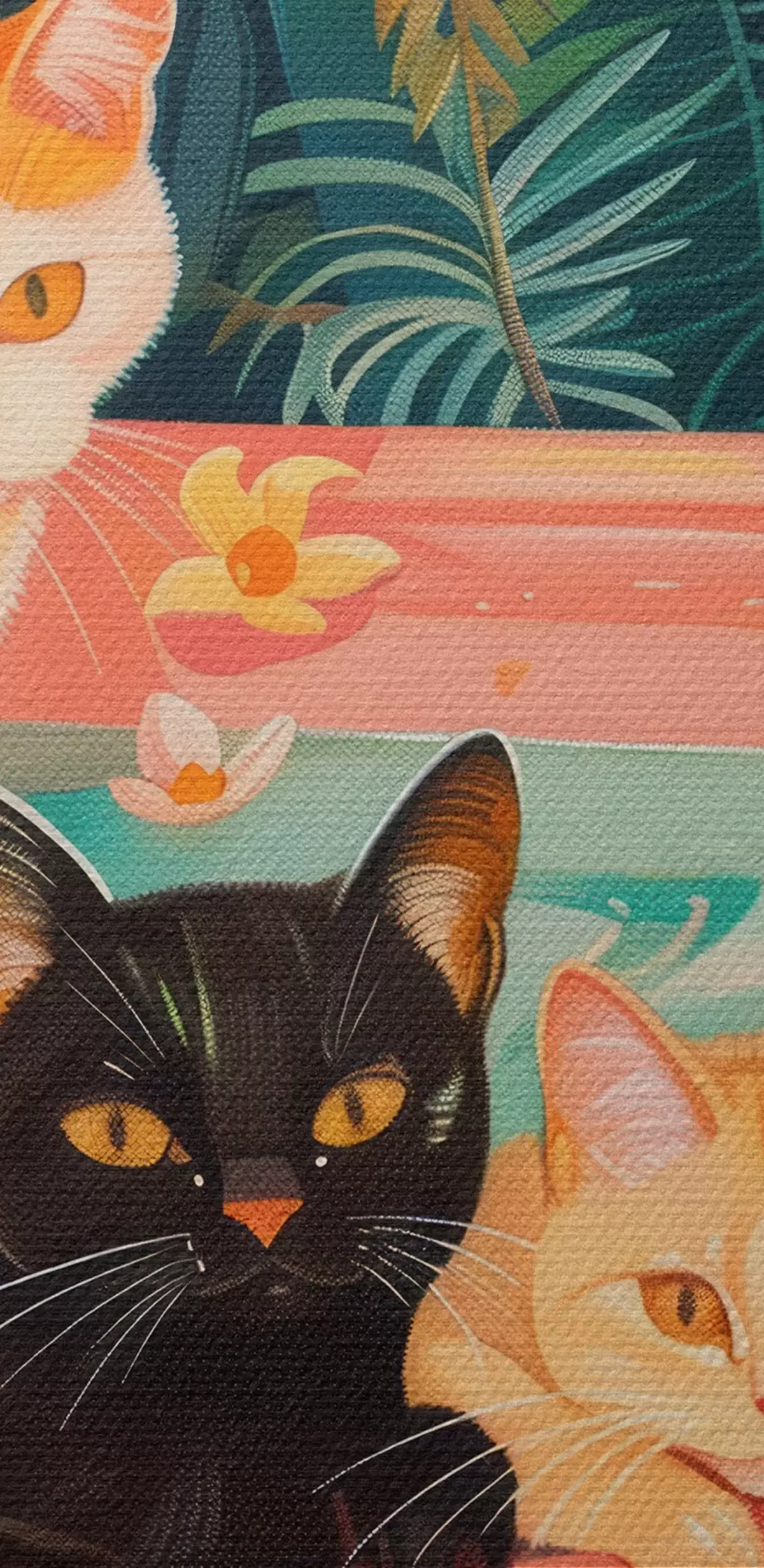 Immagine Gatti in un bagno rosa con foglie verdi, atmosfera da giungla Nr r39465