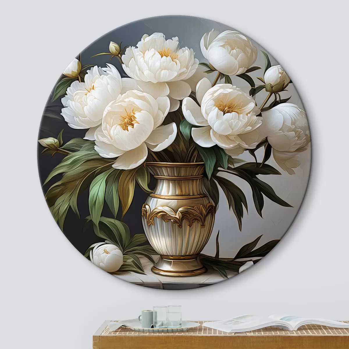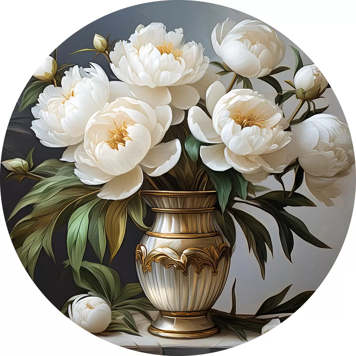 Quadri rotondi Un bouquet di peonie bianche r39475
