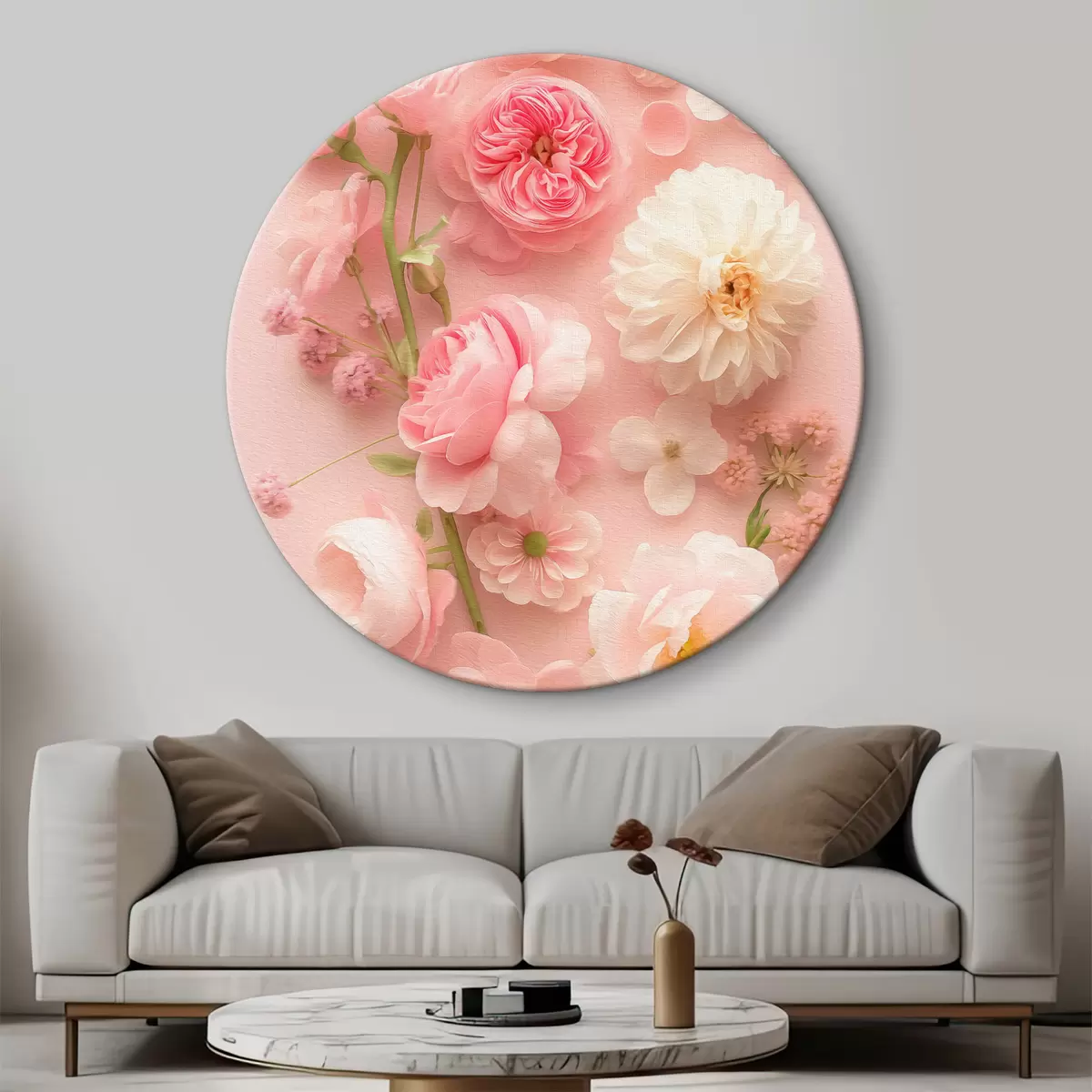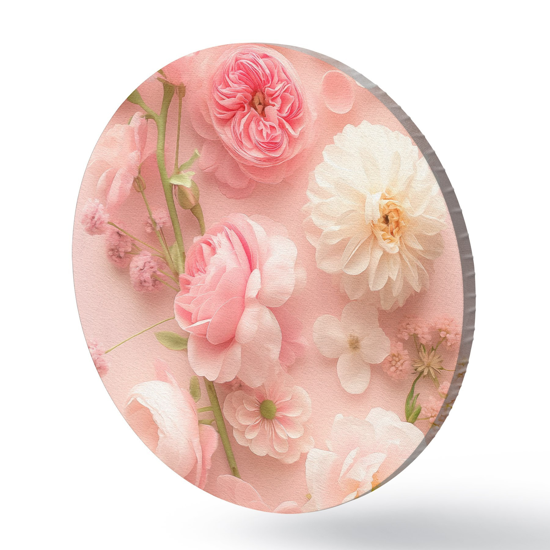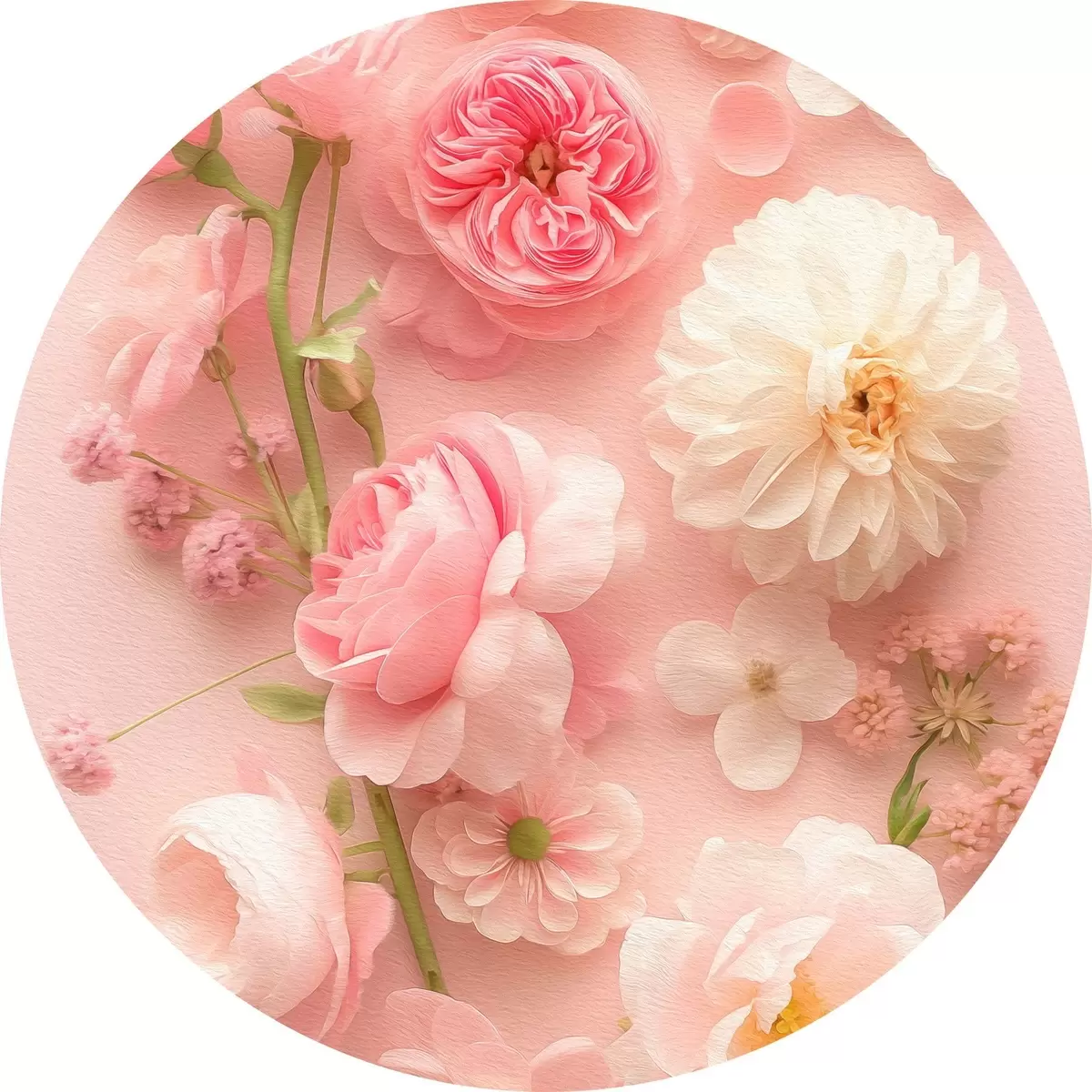 Quadri rotondi Fiori rigogliosi su uno sfondo rosa r39576