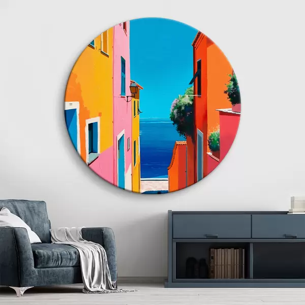 Quadri rotondi Vista mare e strada luminosa r39582