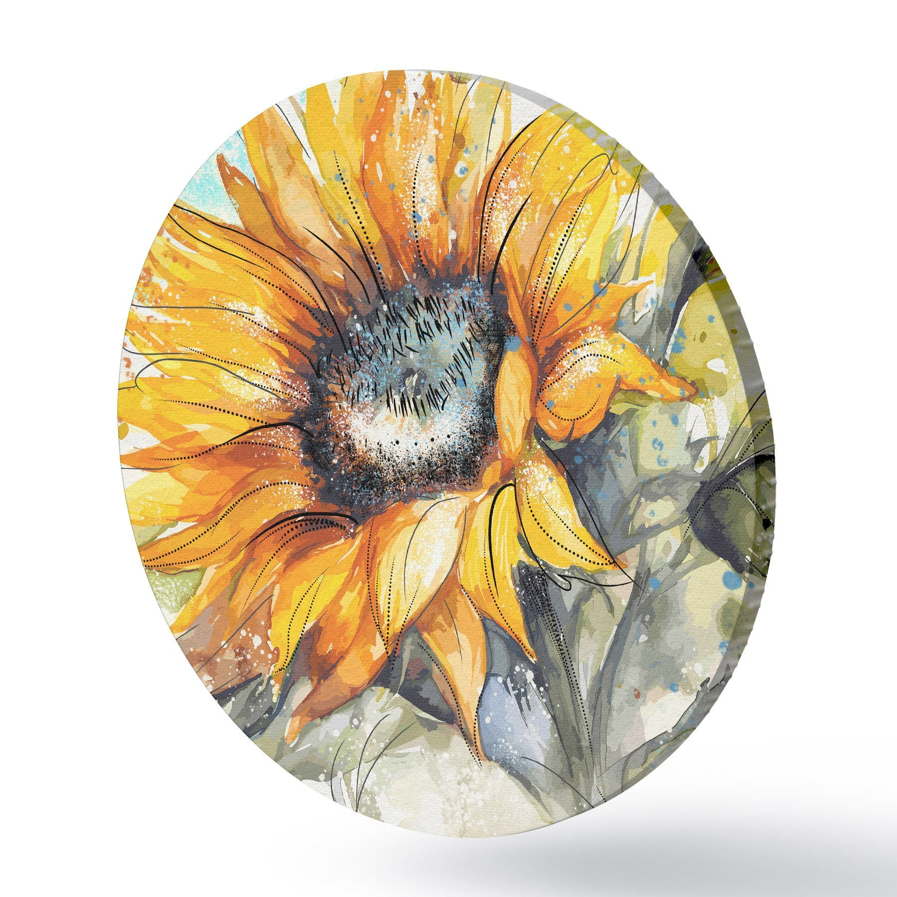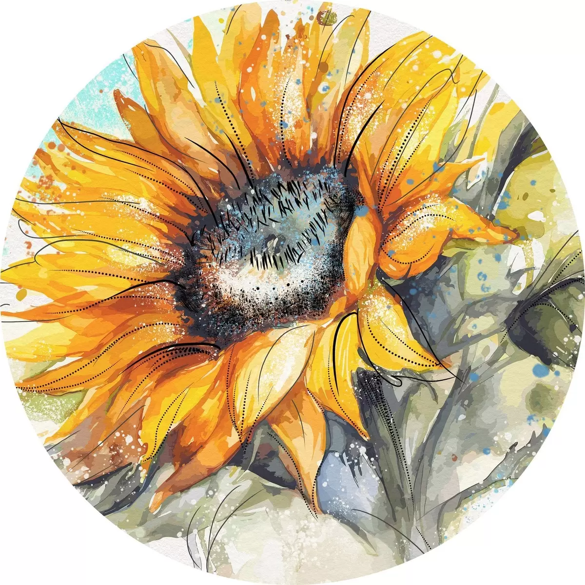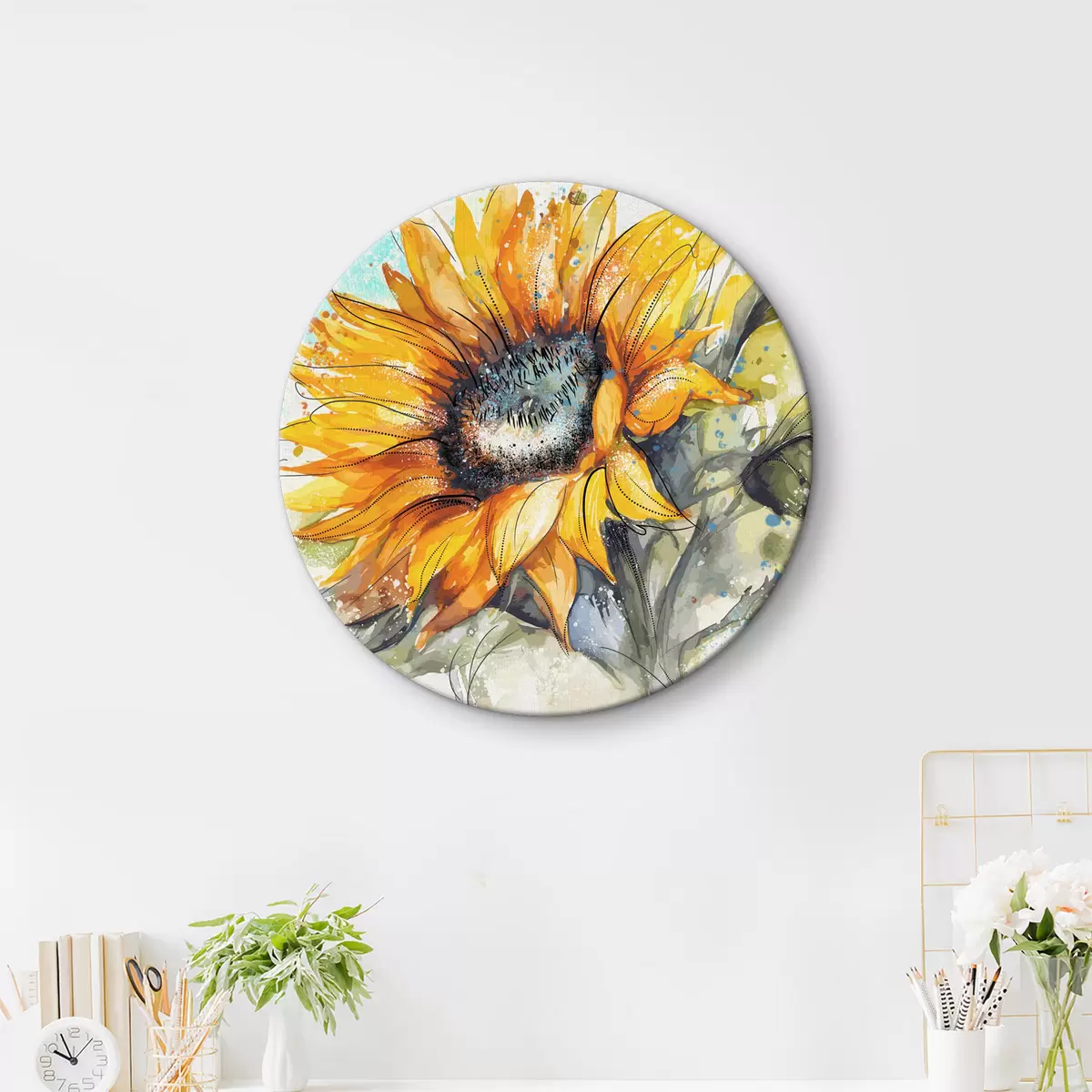 Quadri rotondi Girasole acquerellato con schizzi di vernice r39583
