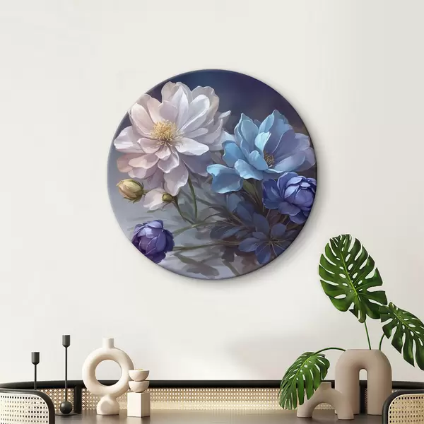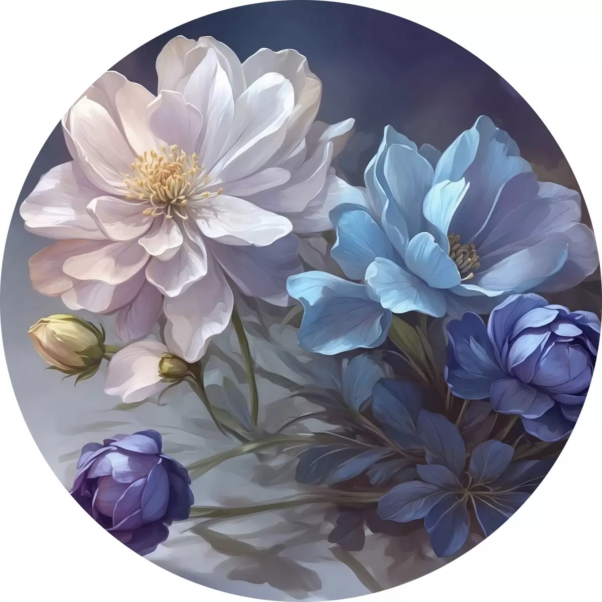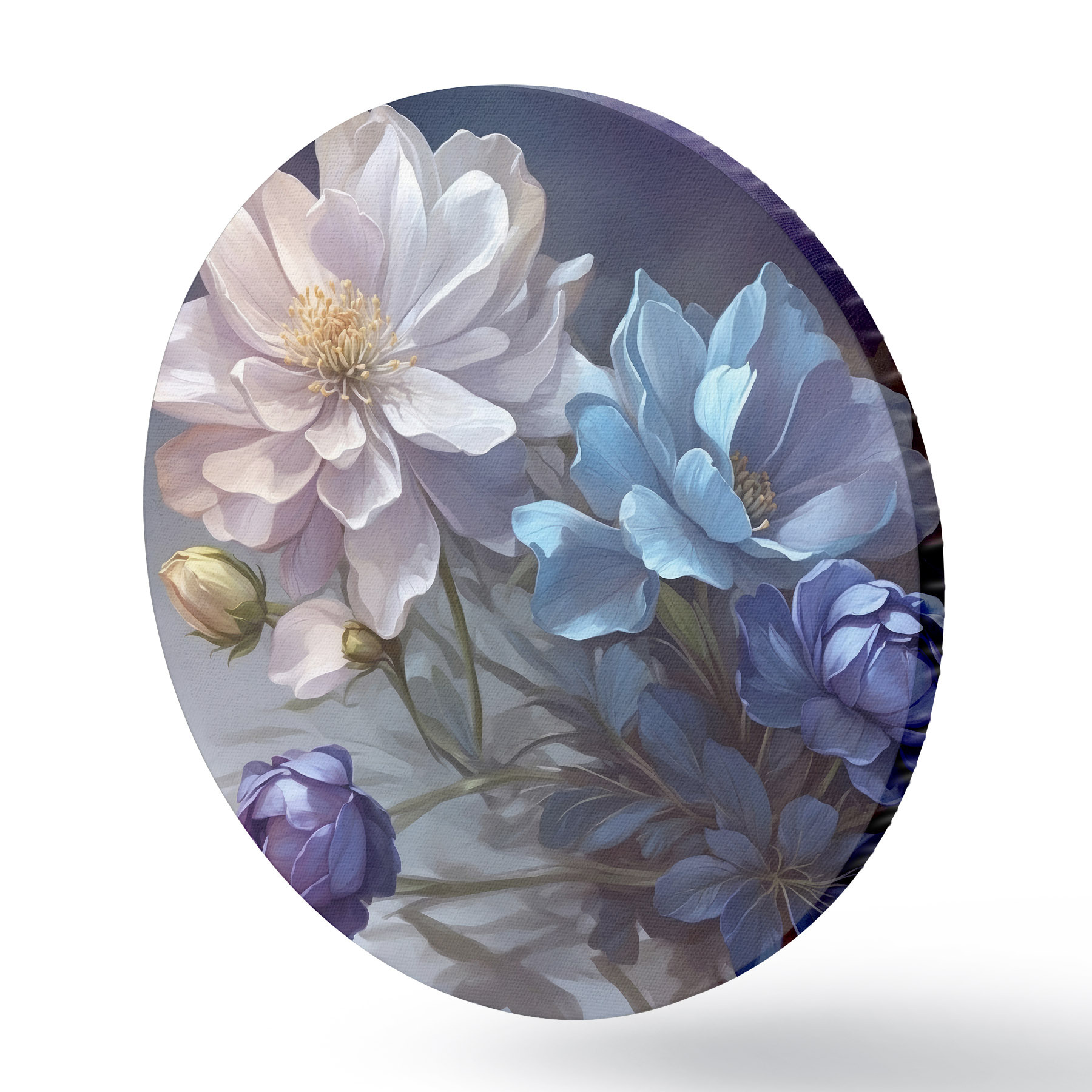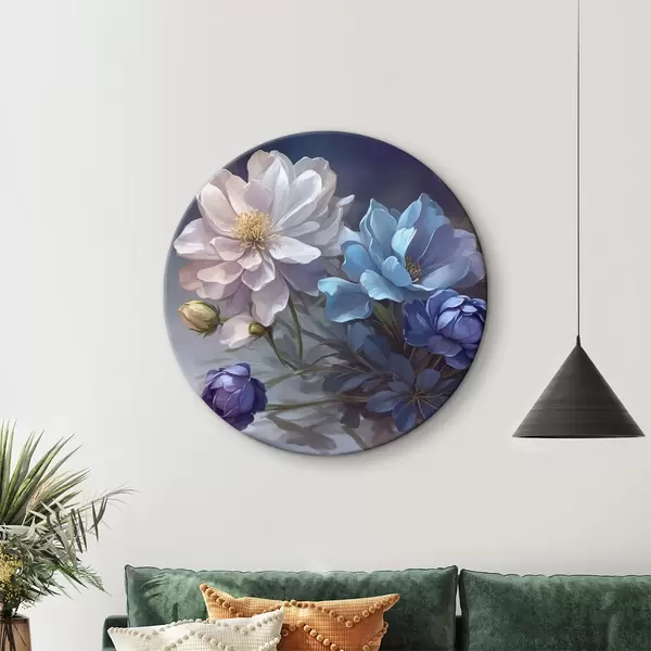 Quadri rotondi Fiori bianchi e blu su sfondo sfocato r39603