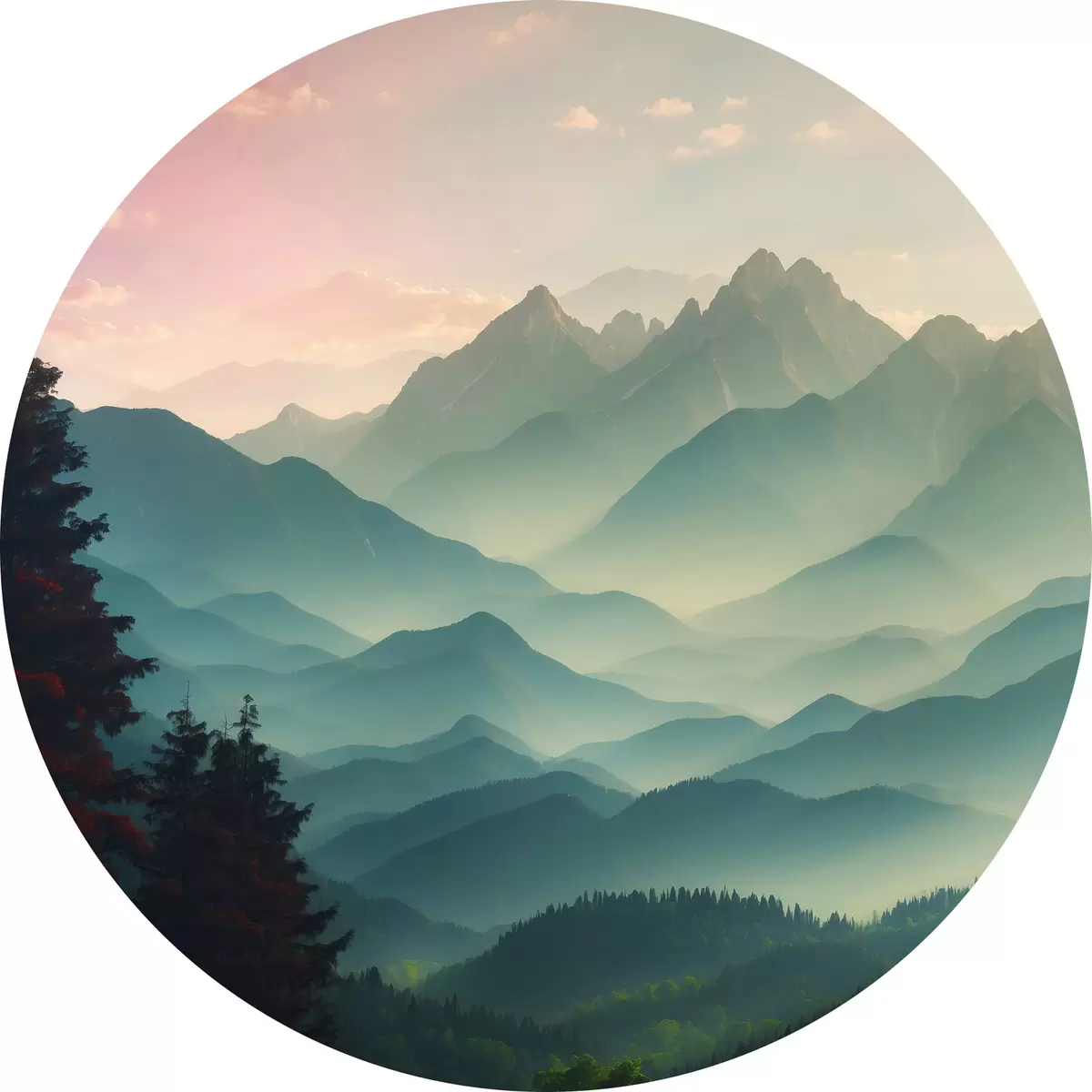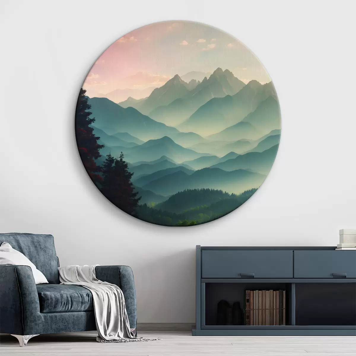 Quadri rotondi Vista sulle montagne all'alba r39607