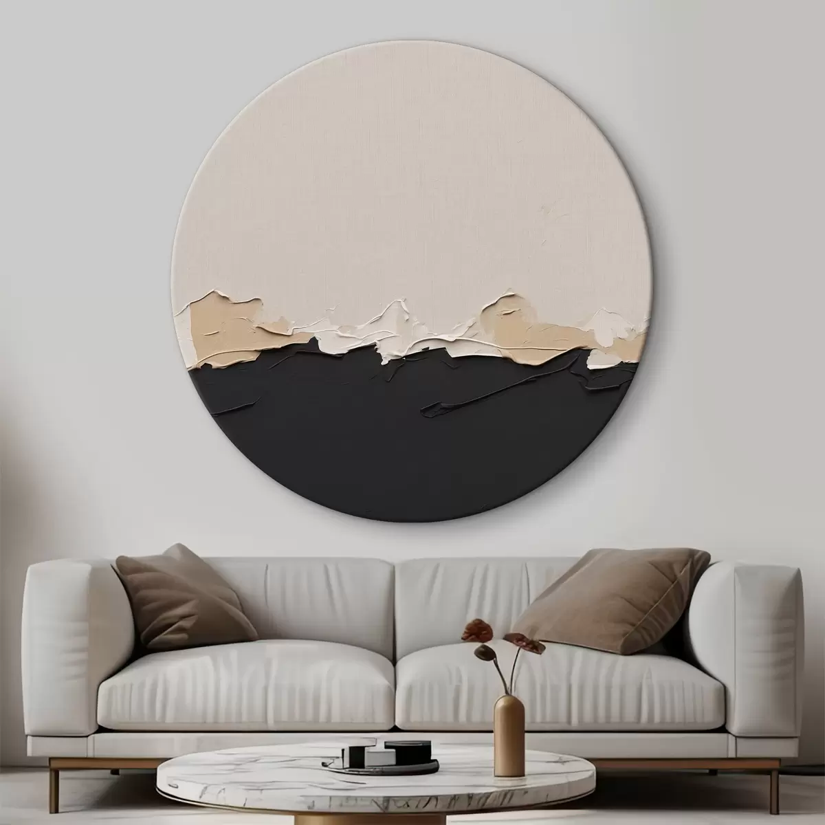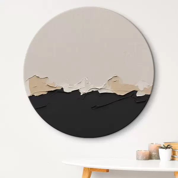 Quadri rotondi Quadro astratto con colori bianco e nero r39609