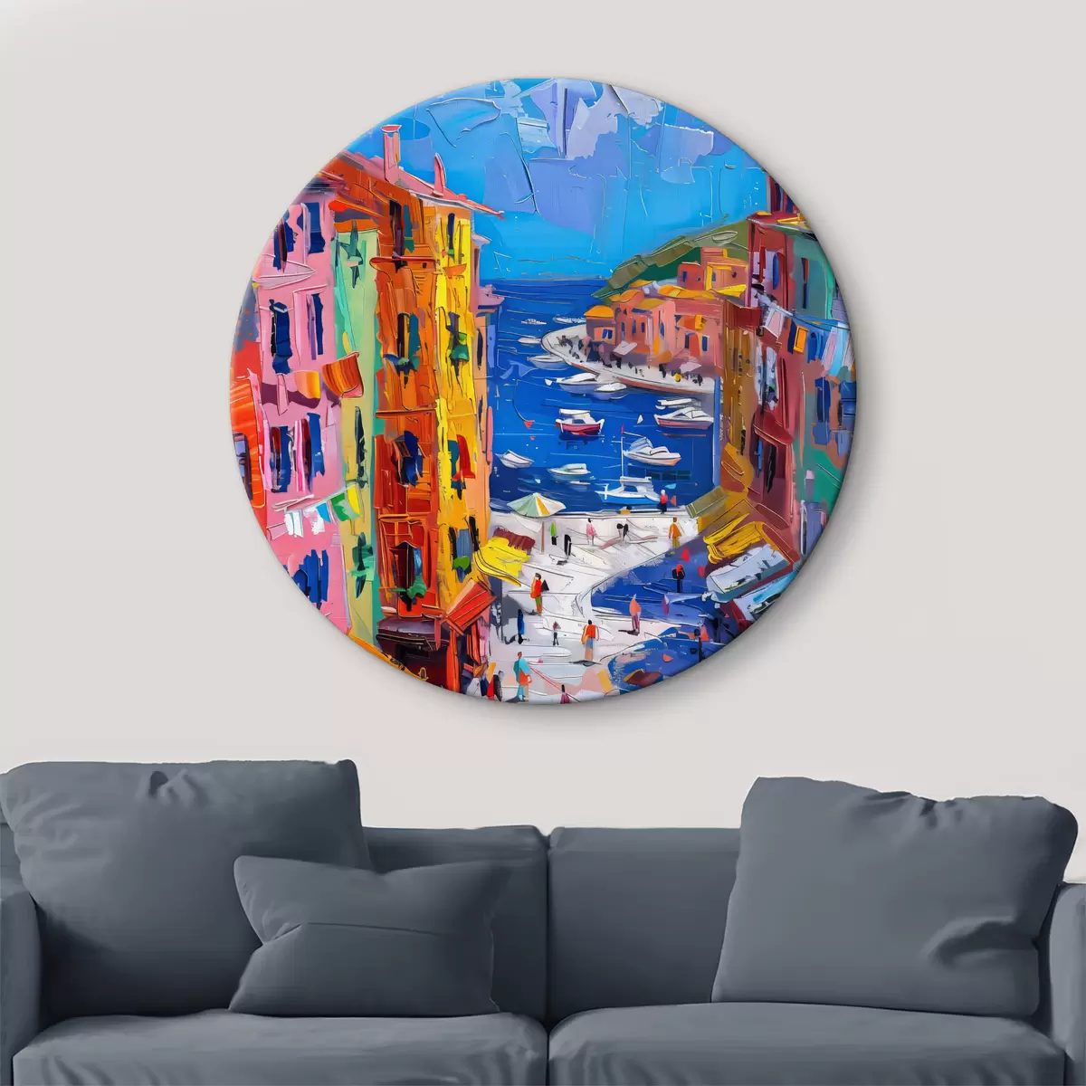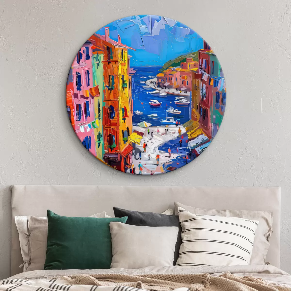Quadri rotondi Villaggio francese al tramonto: un'impressione nello stile di Van Gogh r39627