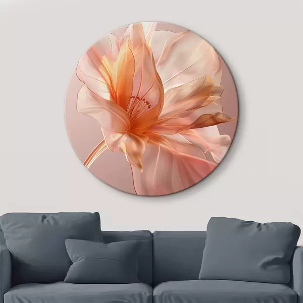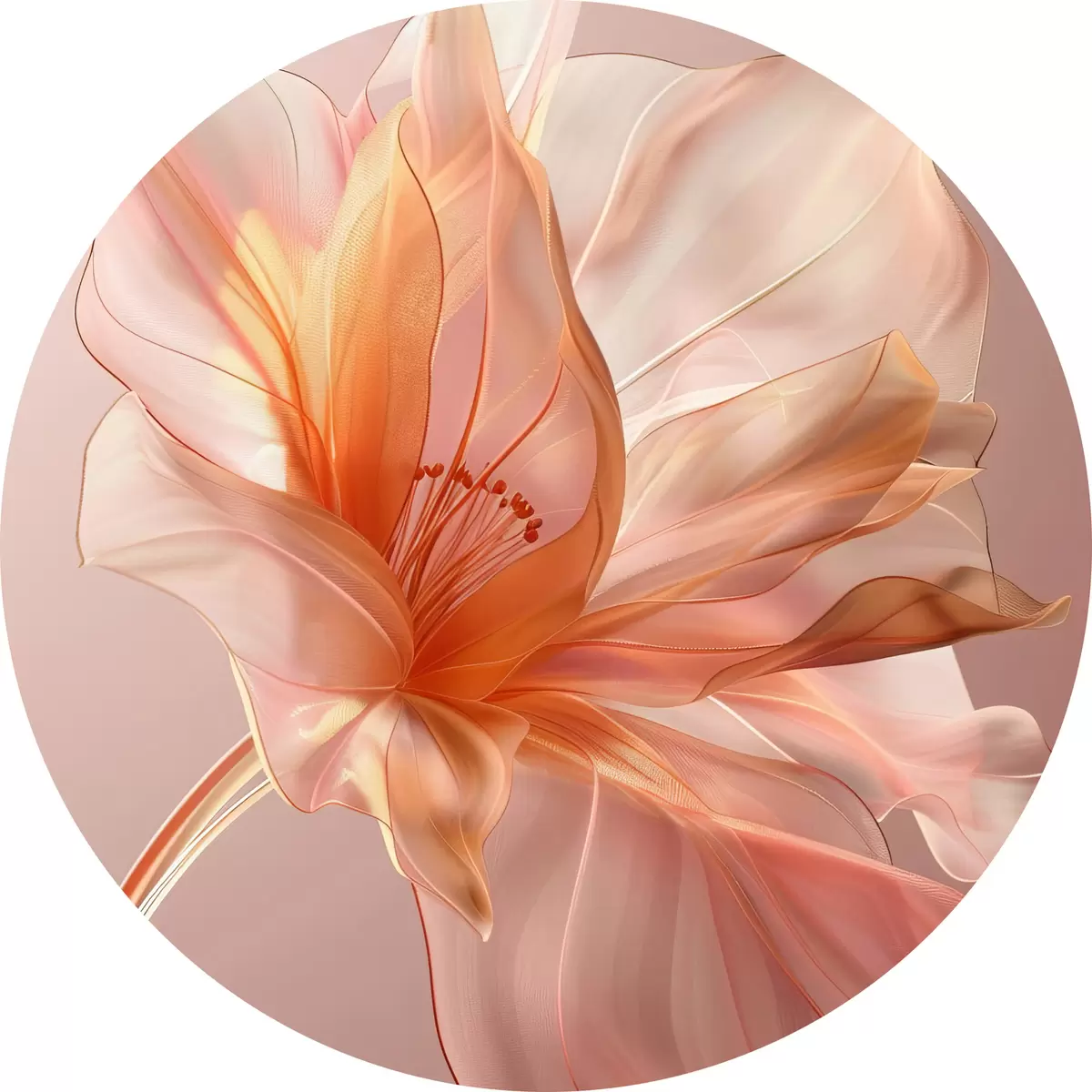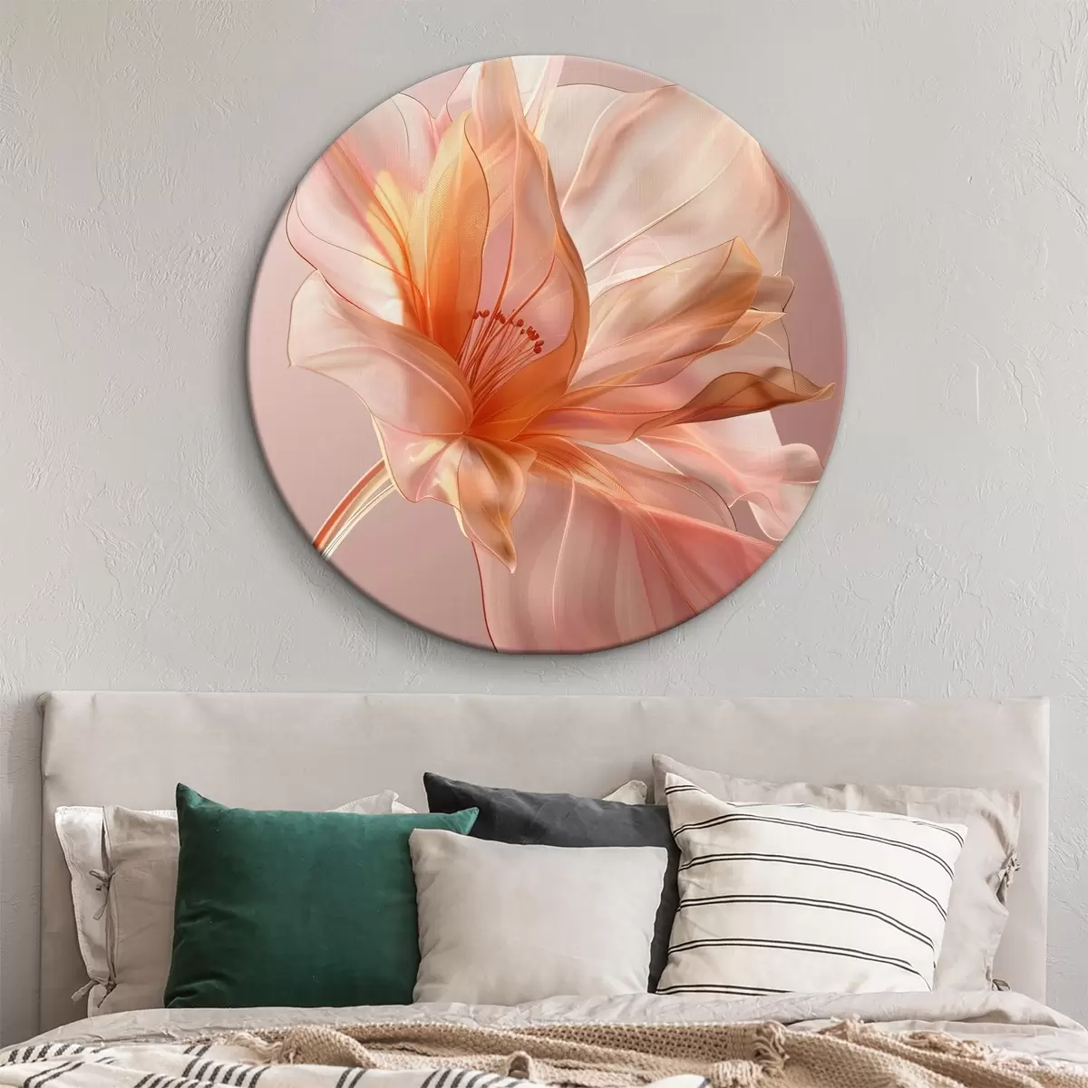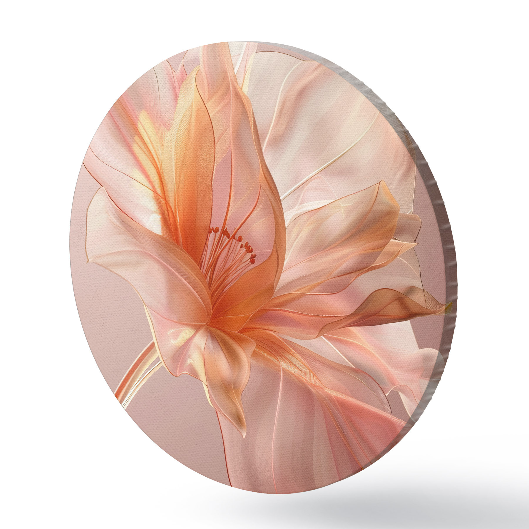 Quadri rotondi Petalo di fiore di pesco su sfondo rosa con linee fluide, minimalismo e dettagli delicati r39631