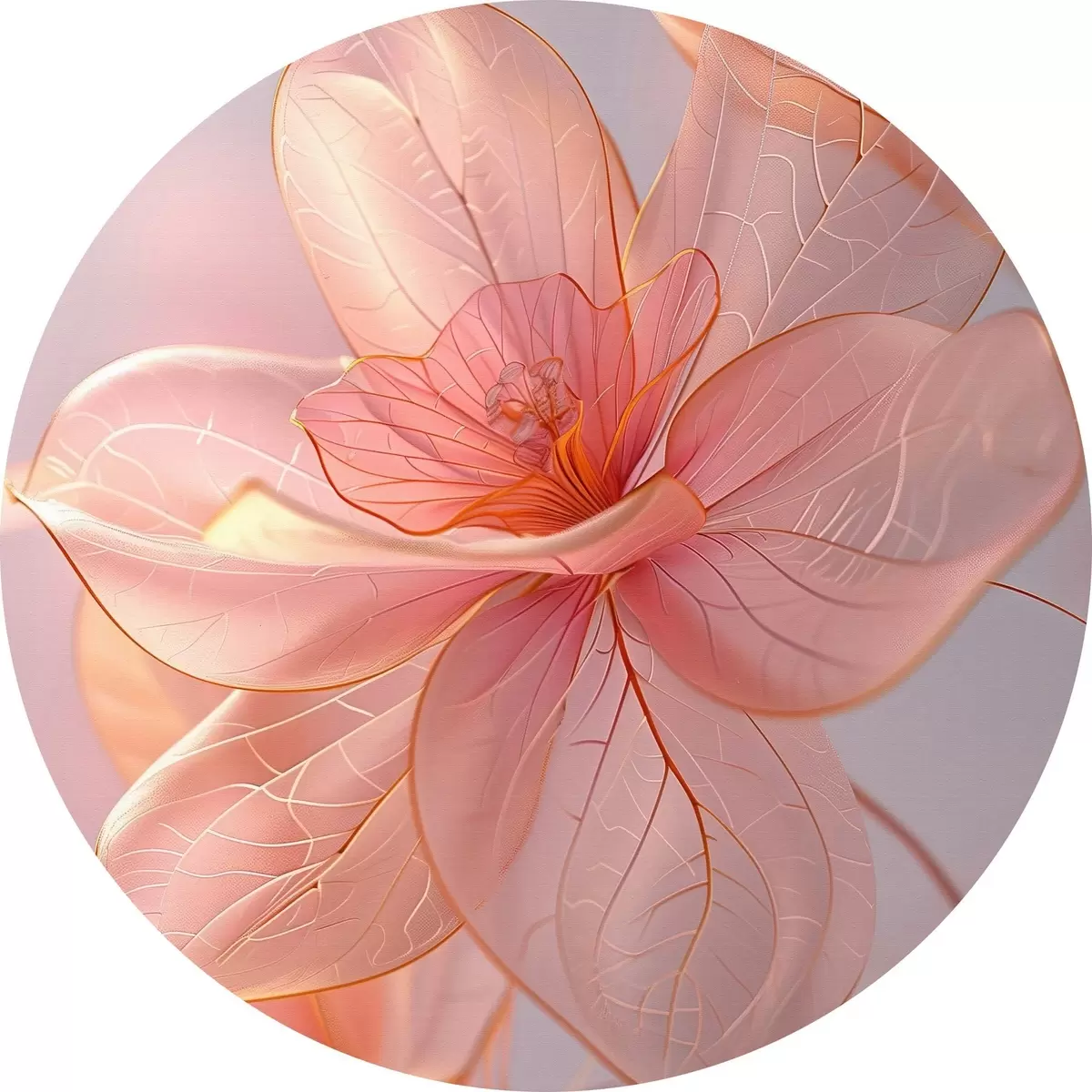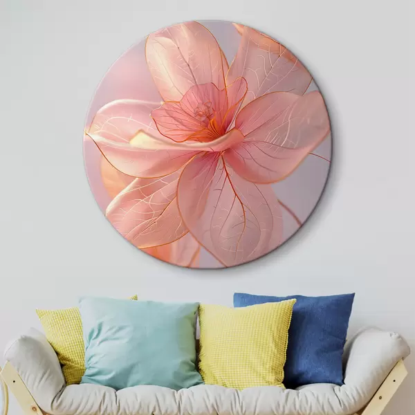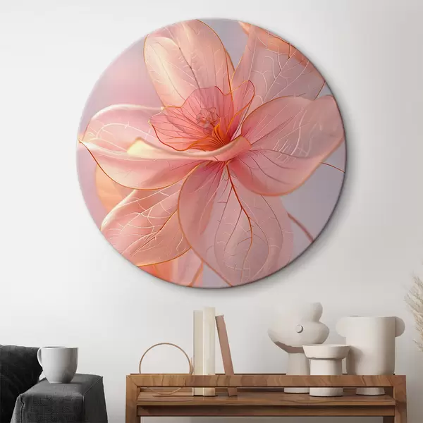 Quadri rotondi Tenui fiori rosa dalle linee morbide: minimalismo e dettagli delicati r39632